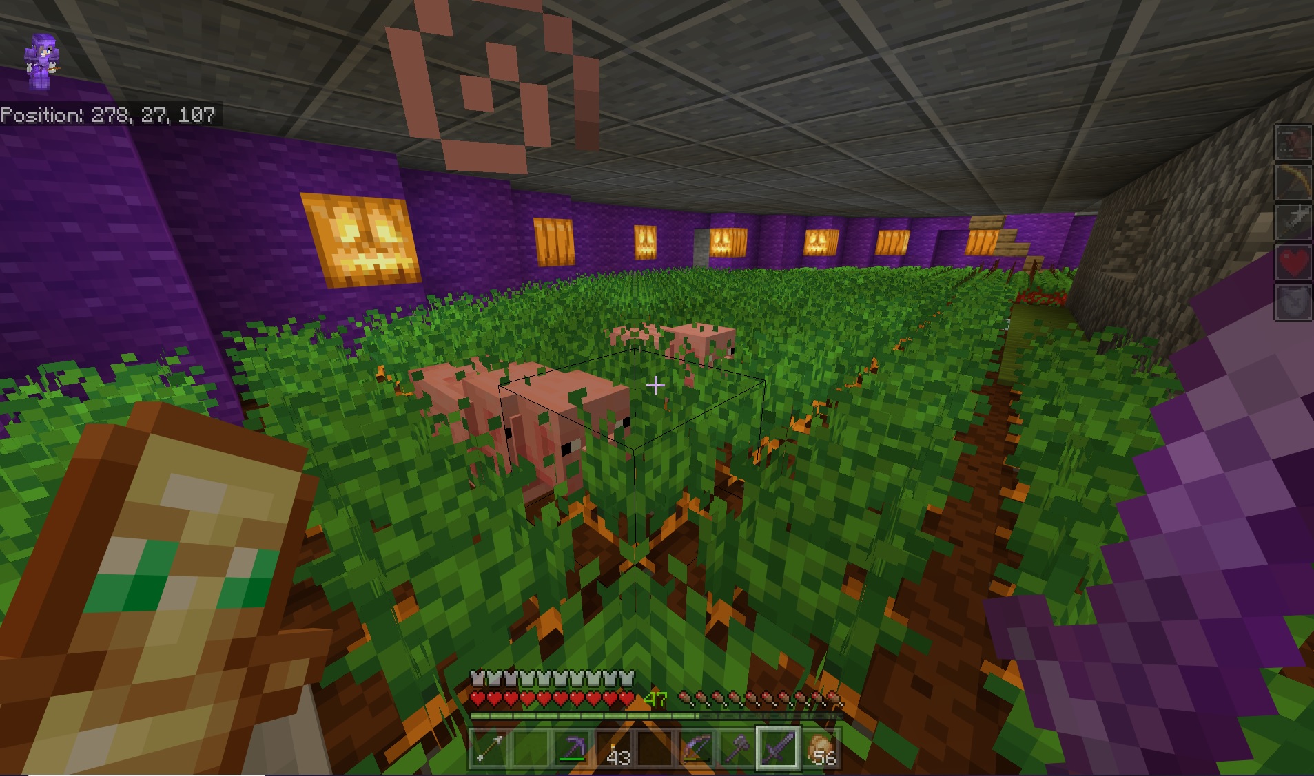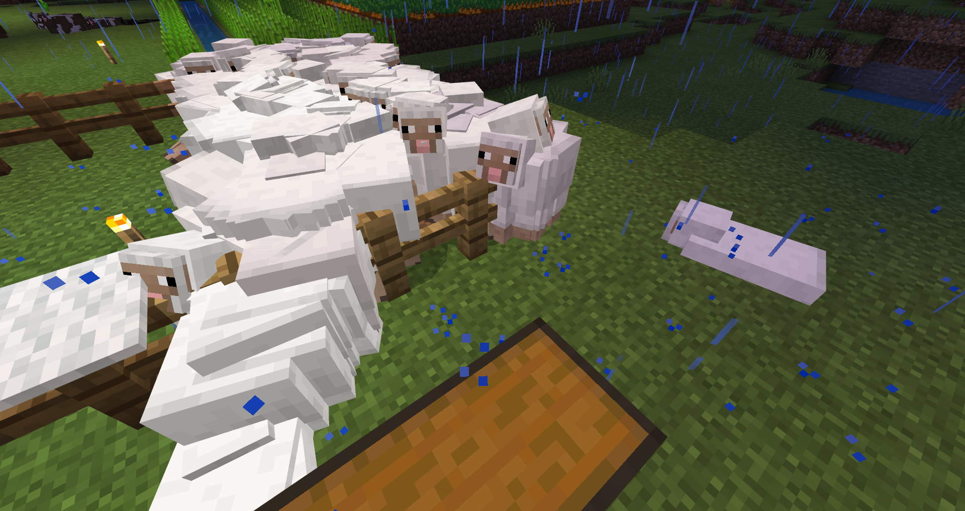 When large amounts of mobs are in a small space as shown below, they are forced outside the space. They appear to be outside the pen and can be interacted with in their visible locations however they act as though they are still inside the space and when punched will teleport back into it