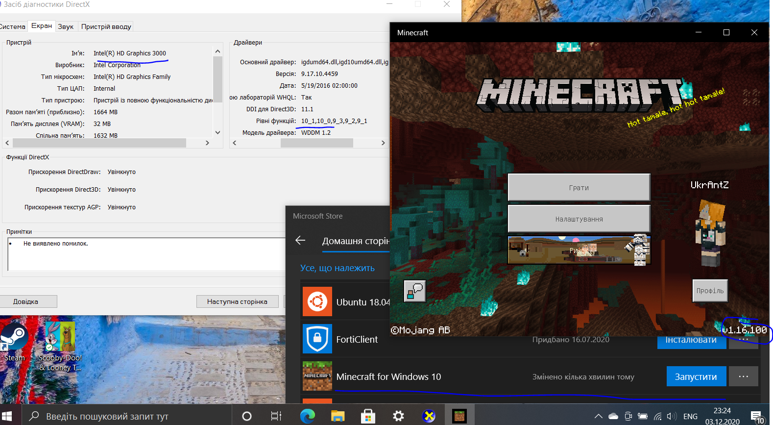 for me it also worked with the 1.16.200 Update for MC an a new automatic Windows10 update. (Laptop Acer Extensa 5635ZG, NVidea GeForce G105M)