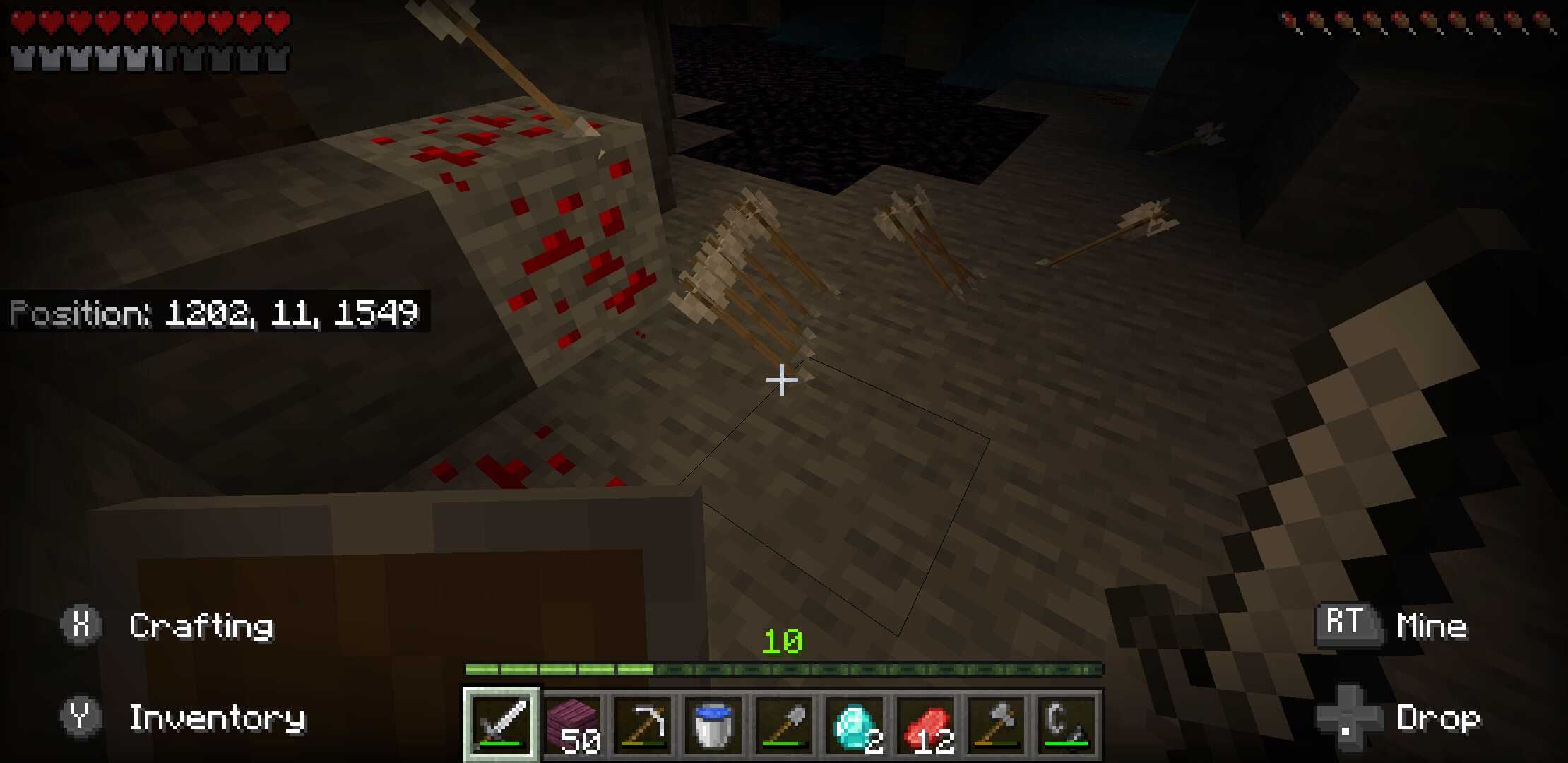 This was probably a coincidence, but while I was in my cave on my survival world with no mods arrows started coming from nowhere and hitting me, I hid and then when I came back out the arrows came from a different spot I went over and tried to hit it but there was nothing there and I kept getting hit by the arrows from right in that spot. I logged out and came back in after taking a picture, there were no more arrows coming but there were a bunch on the ground. I don't know what happened at all, and this is not a lie or a hoax.
