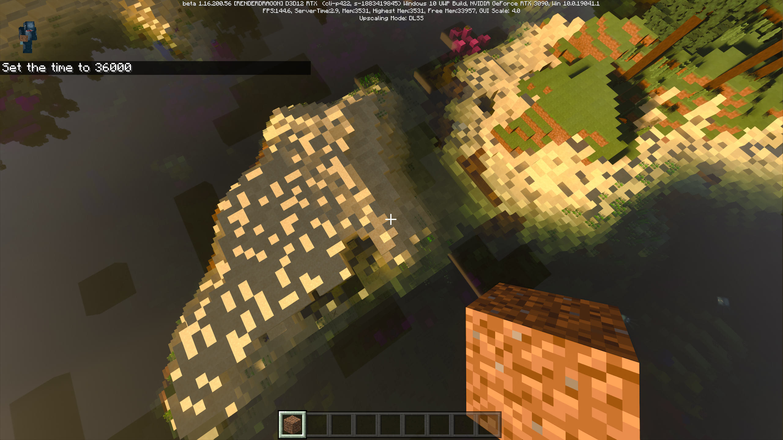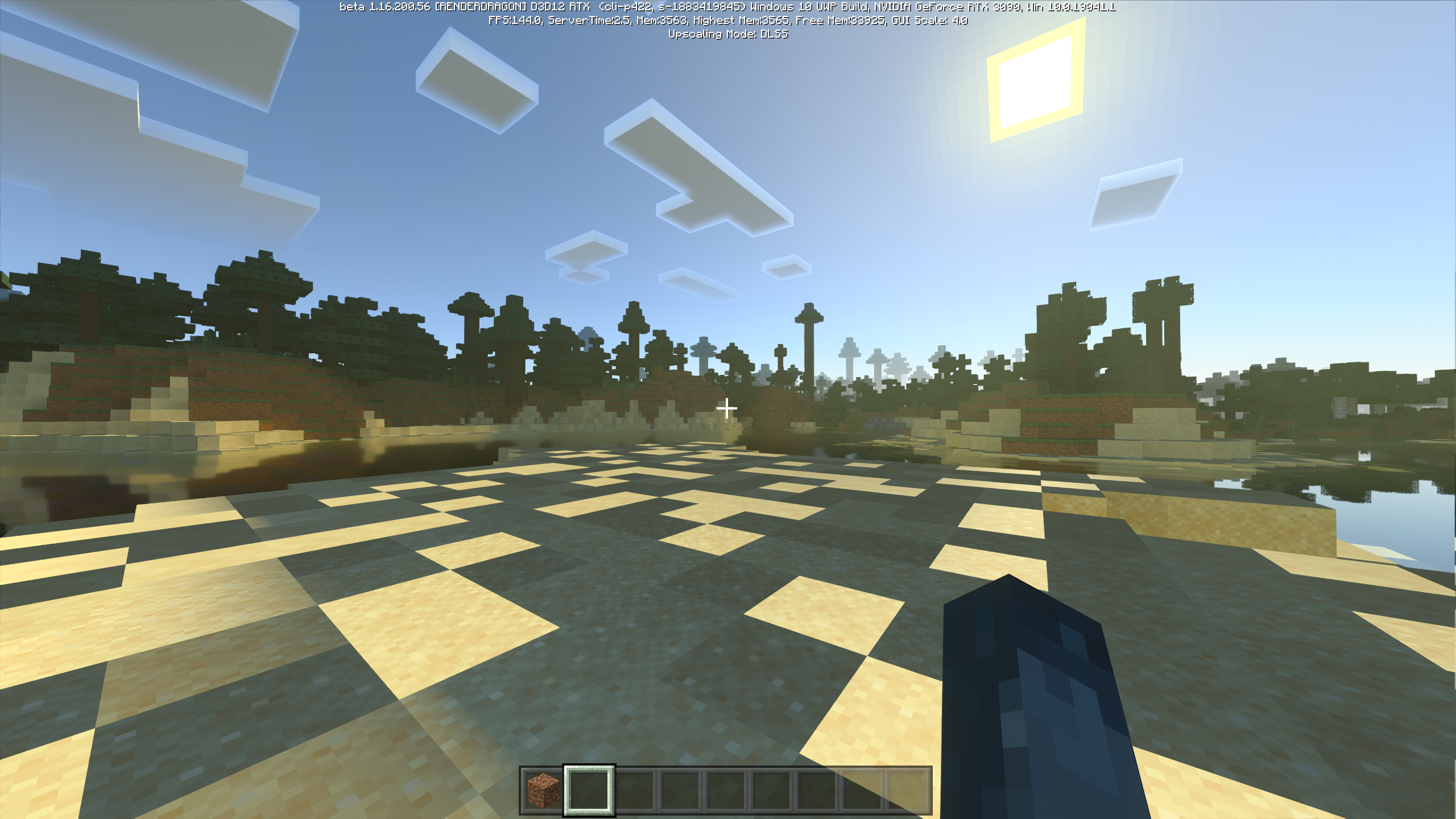 above ground the sun seems to have a constant shadow being cast from it when looking at the ground, and blocks at random seem to lose all their illuminance as if they are in a dark area or something, when there is no direct sunlight on the blocks the glitch seems to not show, so I'm not sure at all what the cause is for this