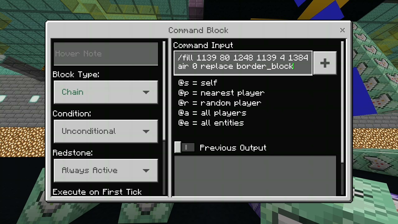 Hi, I am writing to report a *bug that I am experiencing. I am using the "/fill*" command via command blocks (mainly chain and repeat) and once i put in my data and exit the tab it replaces my data for "#" on every "space" and every "letter/number". This is the first time it has happened, at first i thought it was because of the distance of the command: In my case the command was "/fill 1139 80 1248 1139 4 1384 border_block 0 replace air" however i did an command the same distance and height but it worked briefly until "#" was replaced for my code.