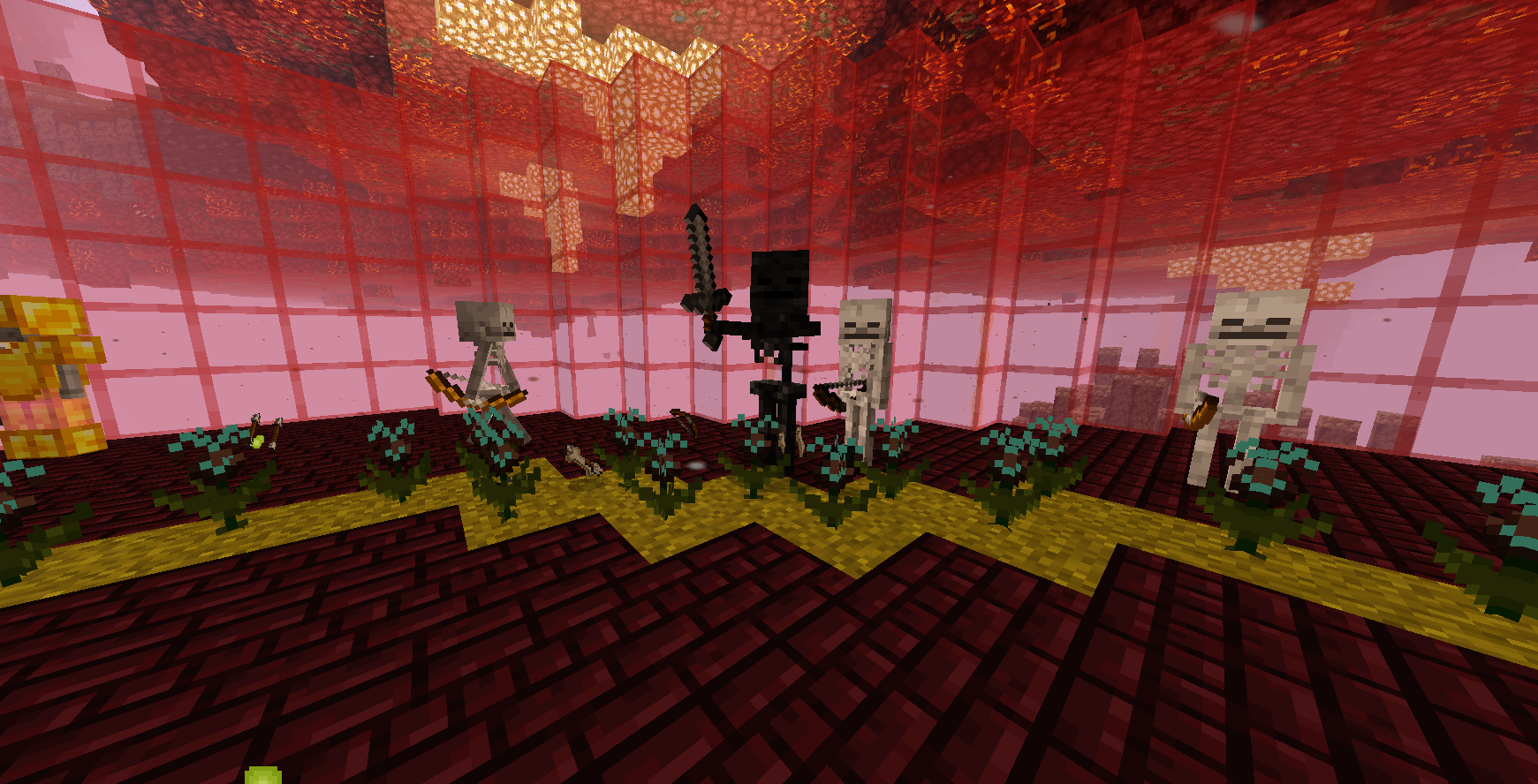 I was testing some things on the wither skull farm and found out that mobs cannot pathfind through wither roses unless you break one of the wither roses.