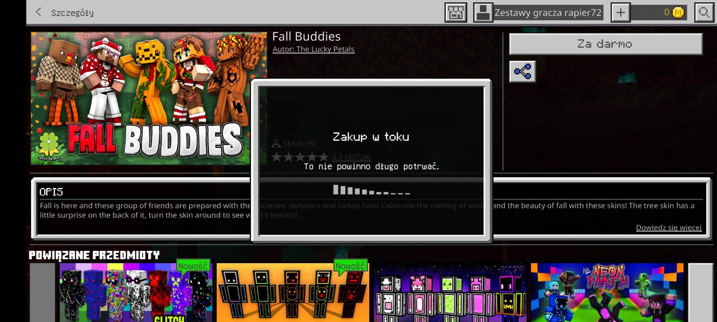 I went to play Minecraft and get a free skin and tried to buy Blockheads and then It was loading so long. And I connected to the internet then nothing worked. I couldn't buy skins for today.