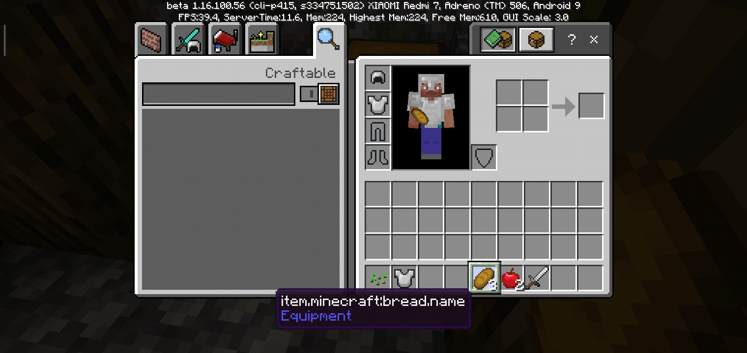 When you're looking at some item, say bread or apple, the name of the item would be not normal. For example, bread has a name of "item.minecraft:bread.name". Same applies to apple. It has a name of "item.minecraft:apple.name". I believe this bug is caused by en_US.lang file error.