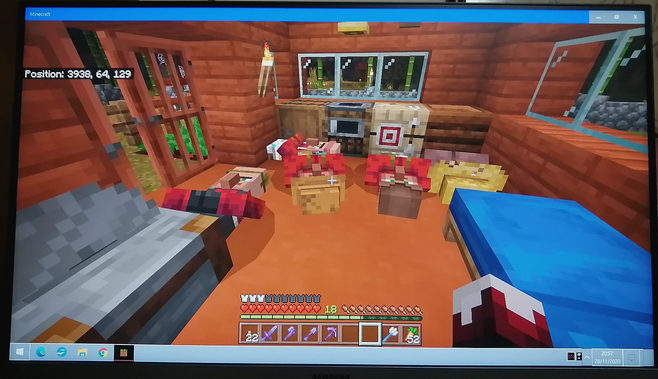 Villagers's hitboxes stay on their beds, but the visuals are at different places and can be pushed anywhere by the player. In the morning everything goes back to normal but sometimes I have to relog to see some of the villagers.