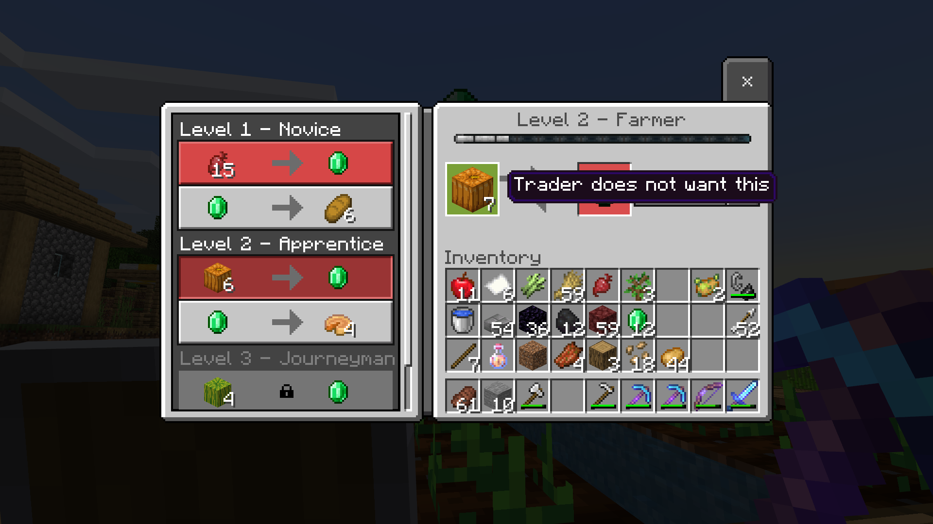 Any other data value I've tried when using /give results in the farmer not accepting the trade.