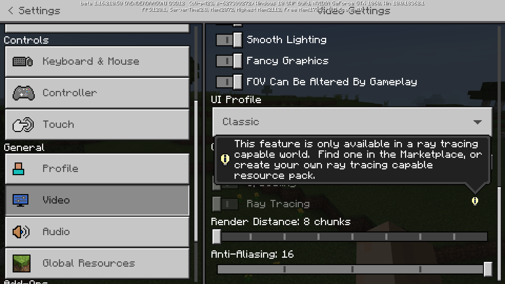 Obviously I'm using rtx resource pack, but ray tracing doesn't work
