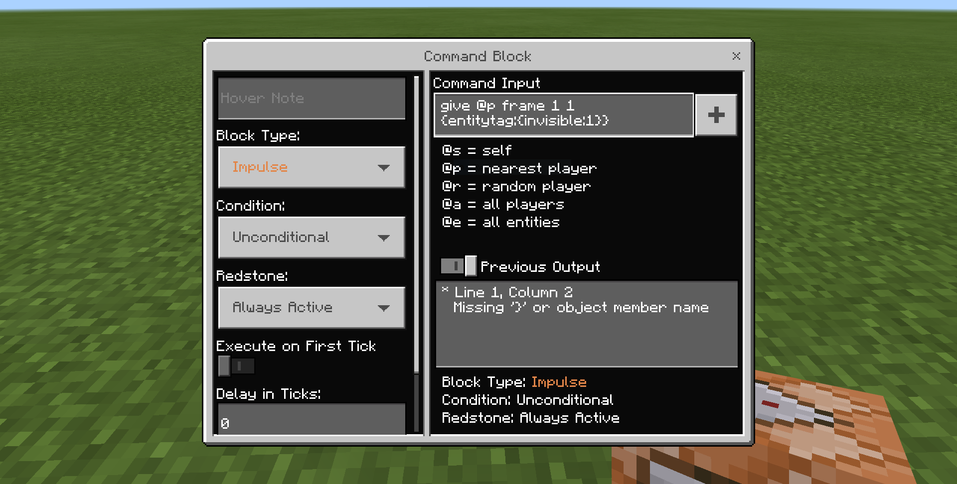 /give @s frame 1 1 {entitytag:{invisible:1}}