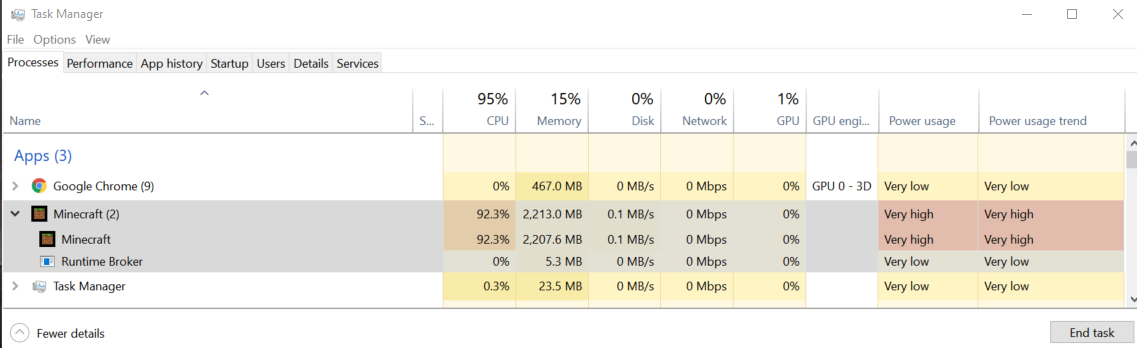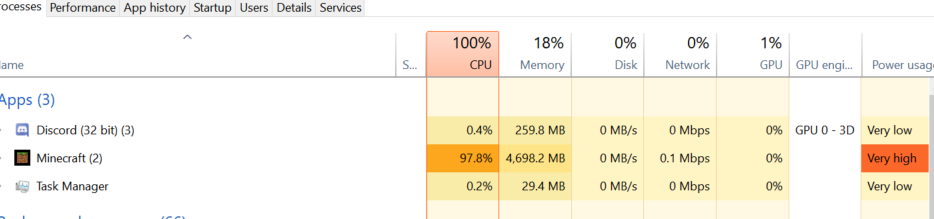 No texture packs, No Mesh packs, No RTX just a base vanilla world and the game is now using 100% of my CPU. it is an I9-9900k so this shouldn't be a thing when running a game kike minecraft.