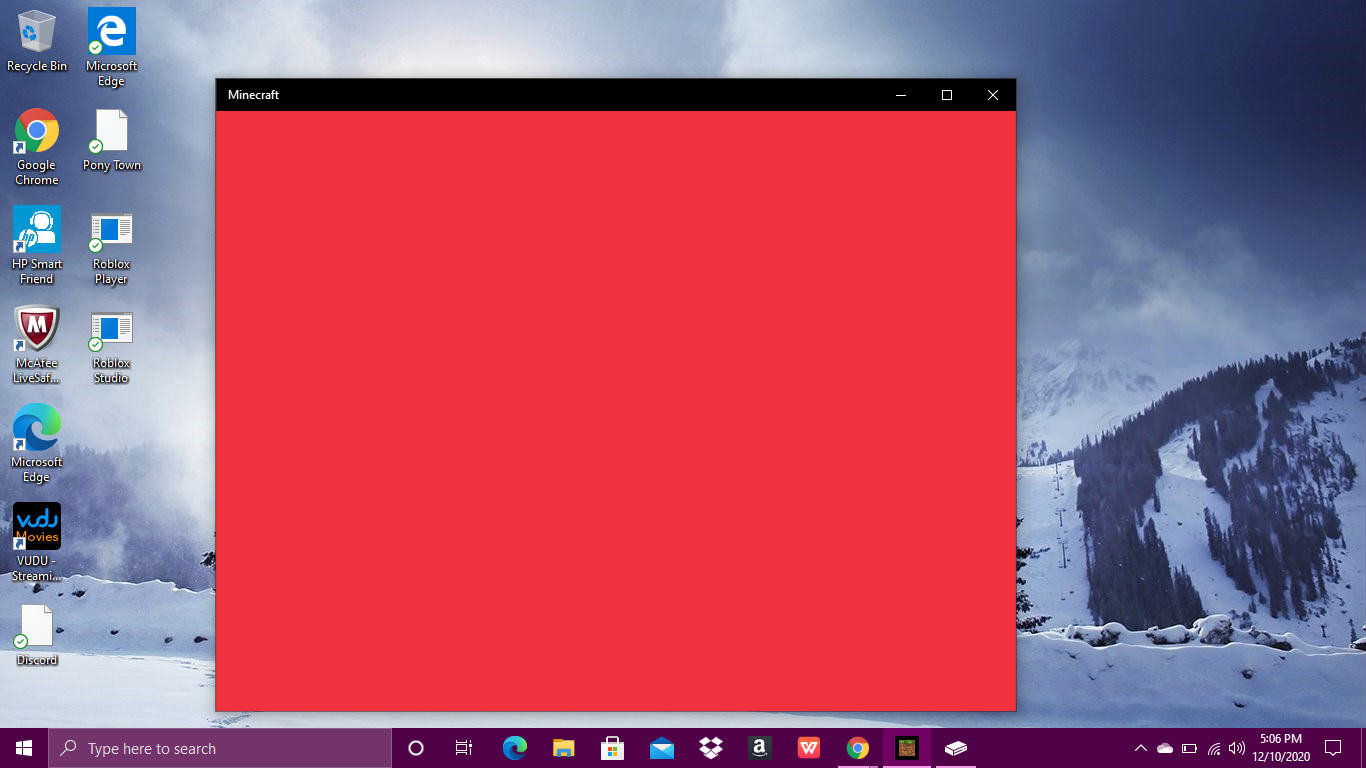 win going to open the Minecraft app on my pc it shows the opening red Mojang screen for a screen and then starts to bug outgoing from red to black from Mabey 20 mins and then it shows just a red screen like the one down bellow