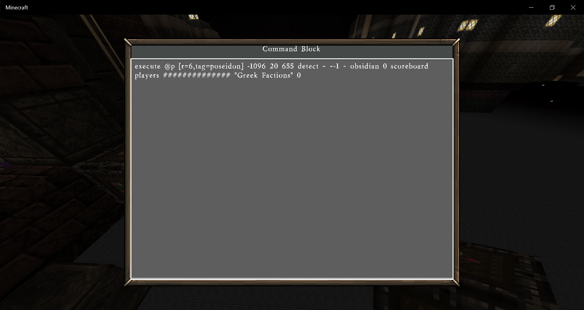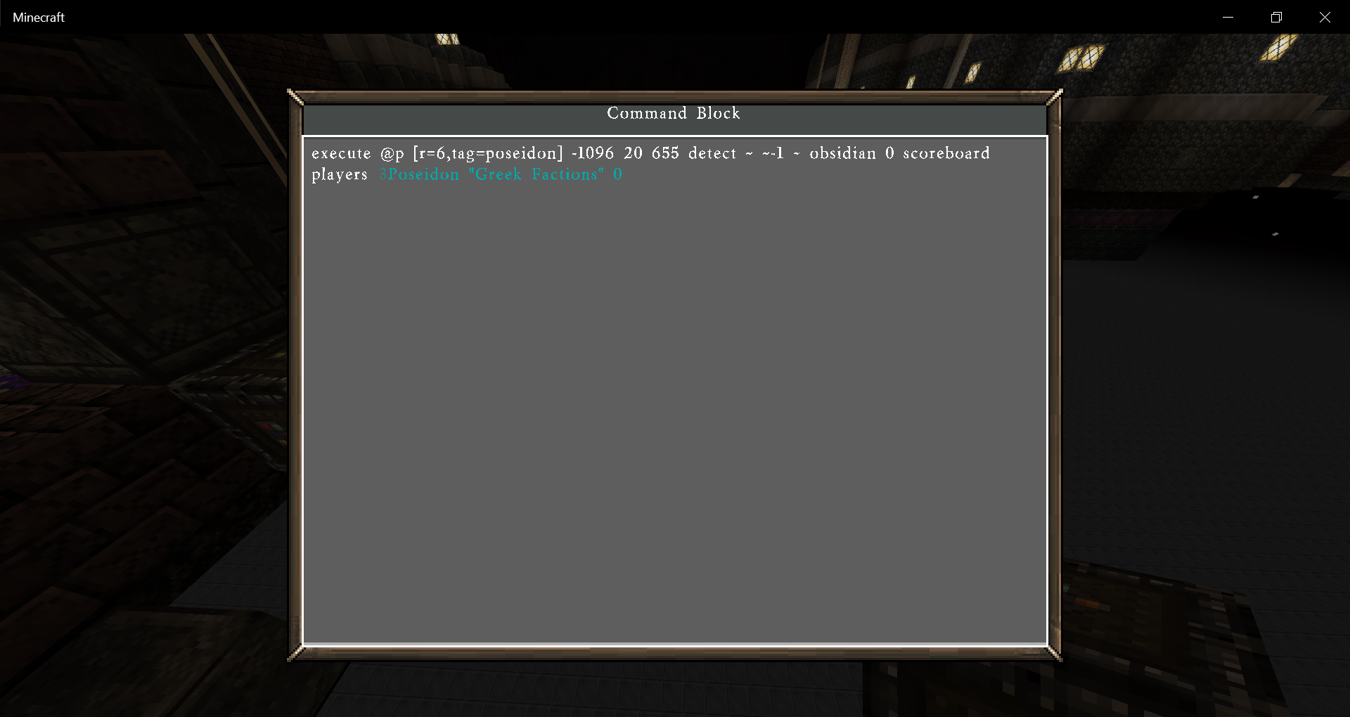 when ever i type execute @p [r=6,tag=poseidon] -1096 20 655 detect ~ ~-1 ~ obsidian 0 scoreboard players test ยง3Poseidon "Greek Factions" 0 the command will tag it self and this is not the only time it happens execute @p [r=6,tag=poseidon] -1096 20 655 detect ~ ~-1 ~ obsidian 0 scoreboard players #### ########## "Greek Factions" 0 i dont know why the commands are taging them selfs like this they didnt used to do this it is VERY ANOYING mojang please put out a small bug fix for this we need commands to work