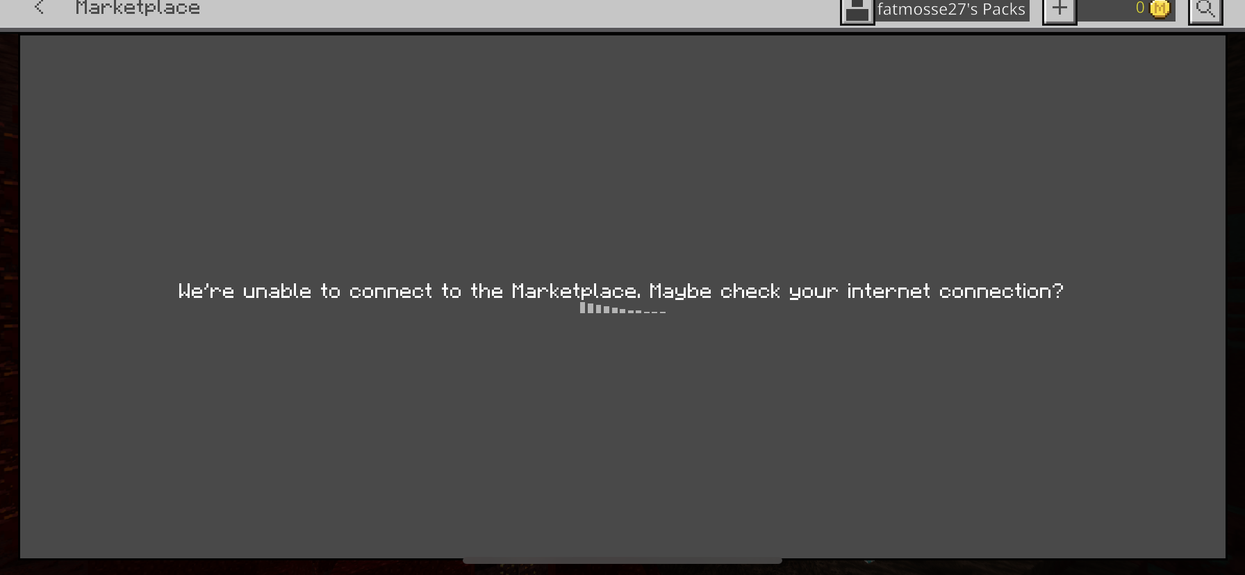 The Minecraft pocket edition market place has been having connecting issues and I haven’t been able to get into it for the past couple of months and I have not been able to use my skin packs I have bought too