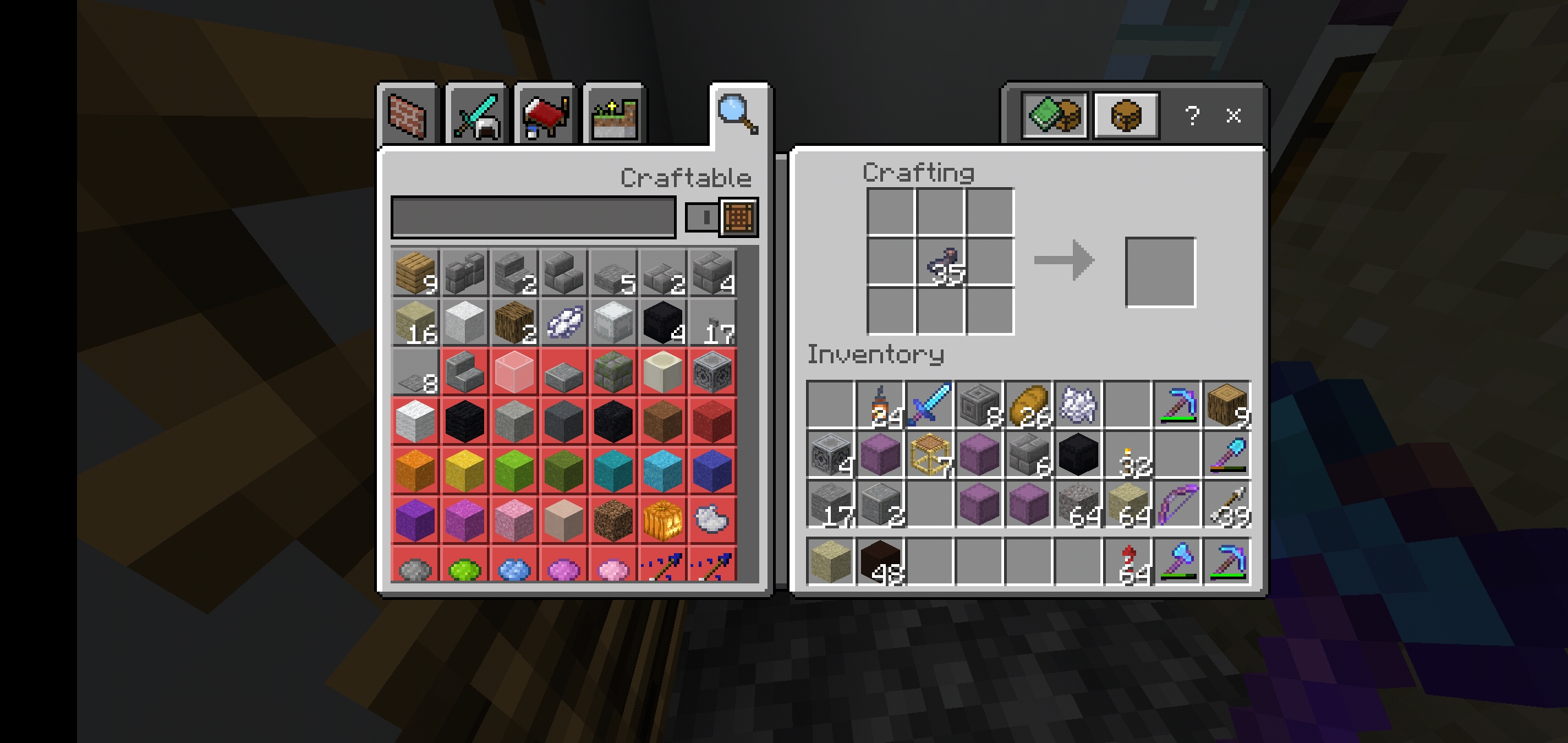 Hello I was trying to make some black dye for my single player survival world and even tho I have a ton of INK SACS, the crafting table won't let me craft any dye from it. When I scroll trough my recipes, the only viable option for black dye is from a whiter rose which I haven't found. Also tried baking my ink sacs just in case and that doesn't work either obviously.
