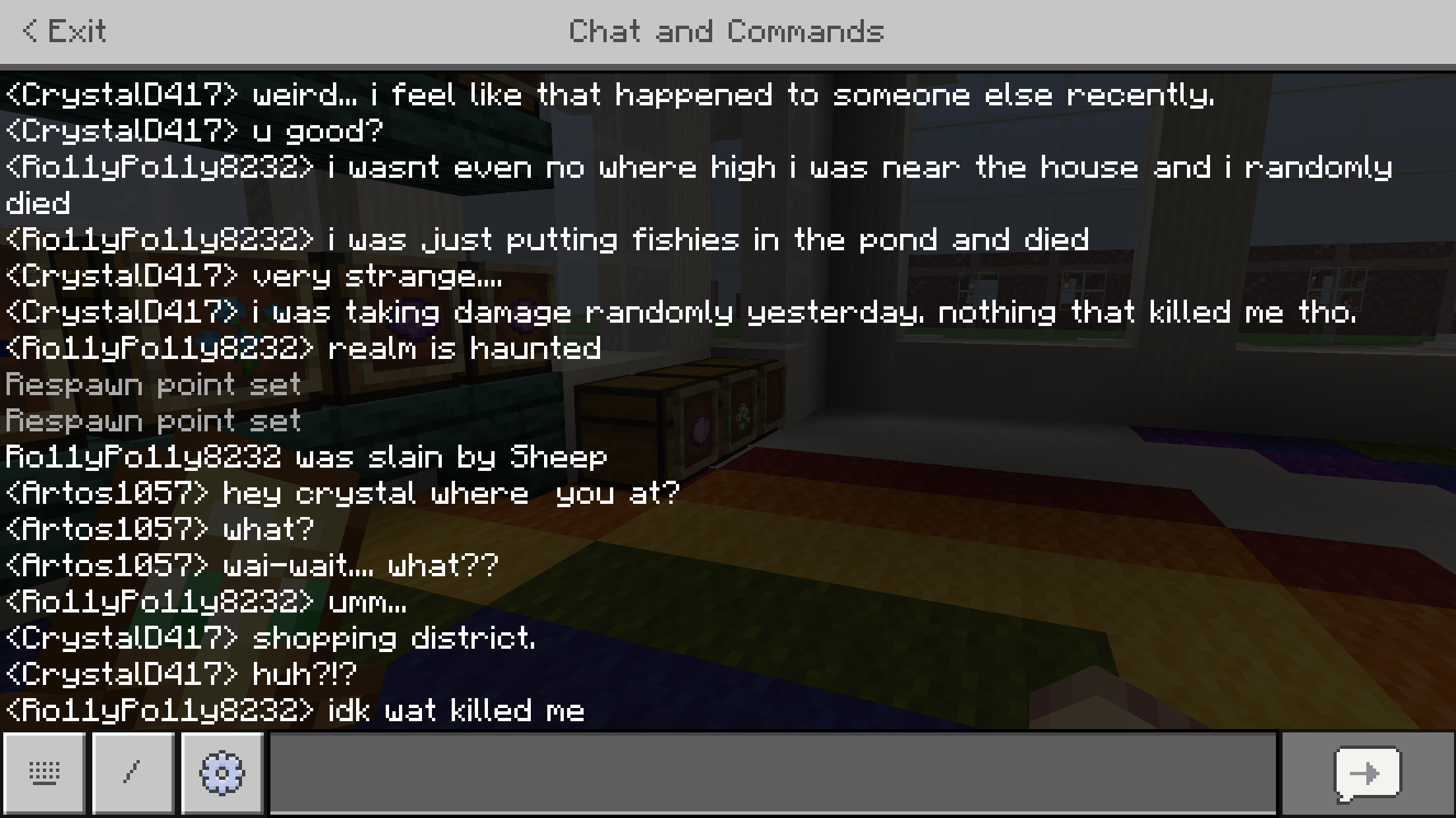 You can’t see the death message in chat. This happened almost immediately after the same character “fell from a high place” while standing on the ground.