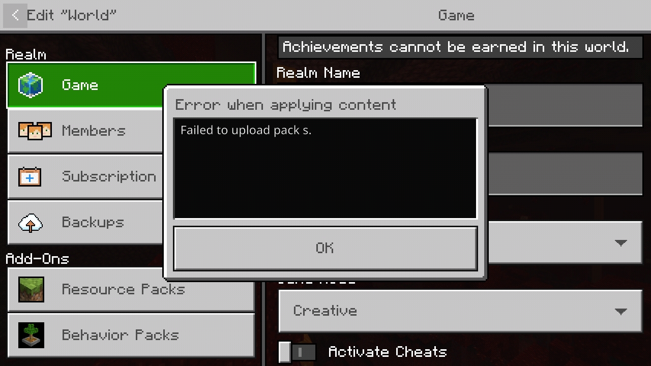 Realms will allow certain of addons I tried activate some resource pack and behavior pack it loads and and it keeps showing the where exporting and intializing and it loops sometimes and eventually it crashes then I do it again the same happens