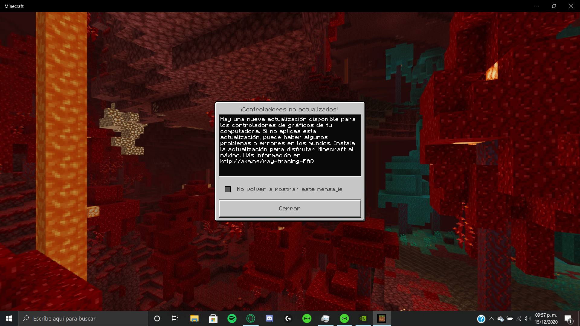 At the start minecraft appears a message saying: outdated graphics drivers, even if they are on the latest version provided by nvidia and Intel.