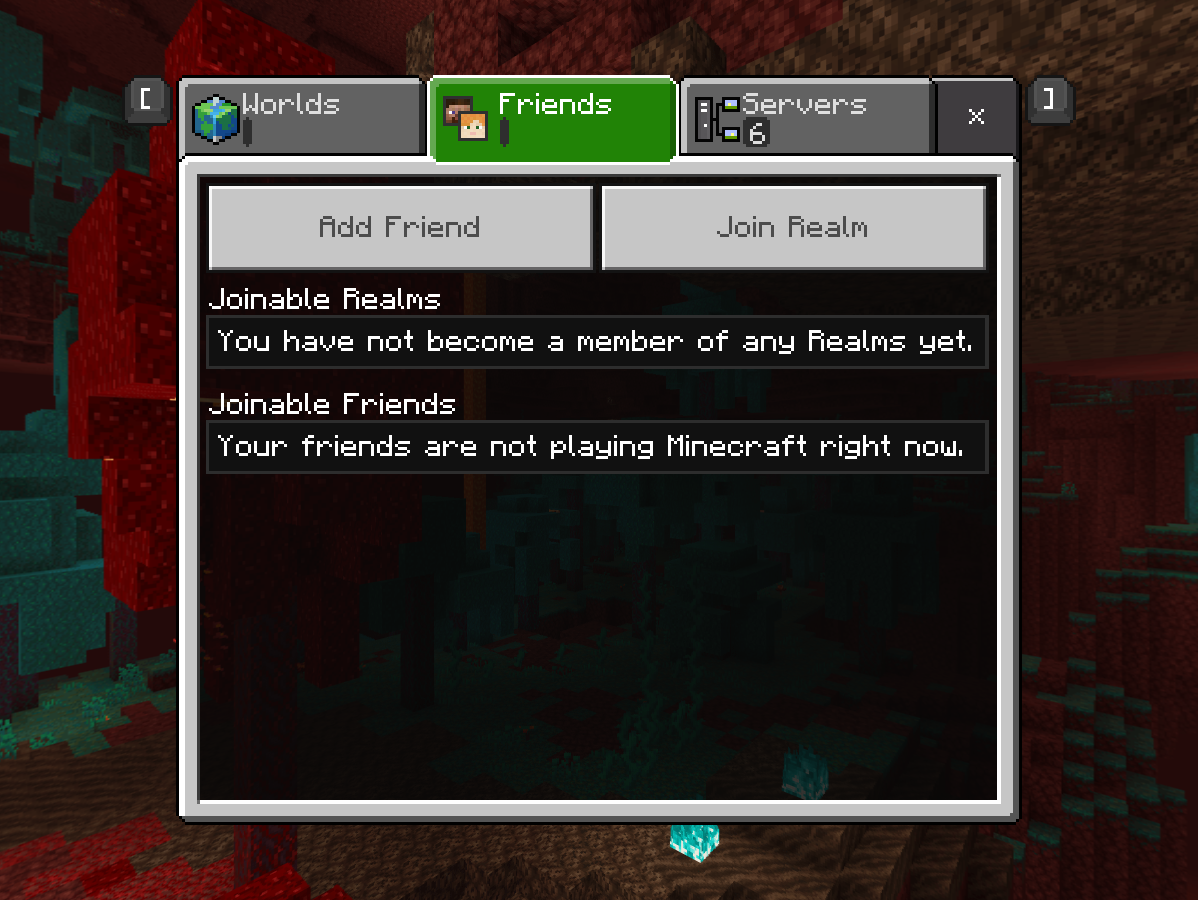 I have been playing Minecraft after the update without issues however, today out of nowhere I am no longer able to play joinmy fiance's lan game. She also does not show online on my friends' list. I have not changed anything from yesterday when we are able to play with each other. We are both connected to the same internet router.