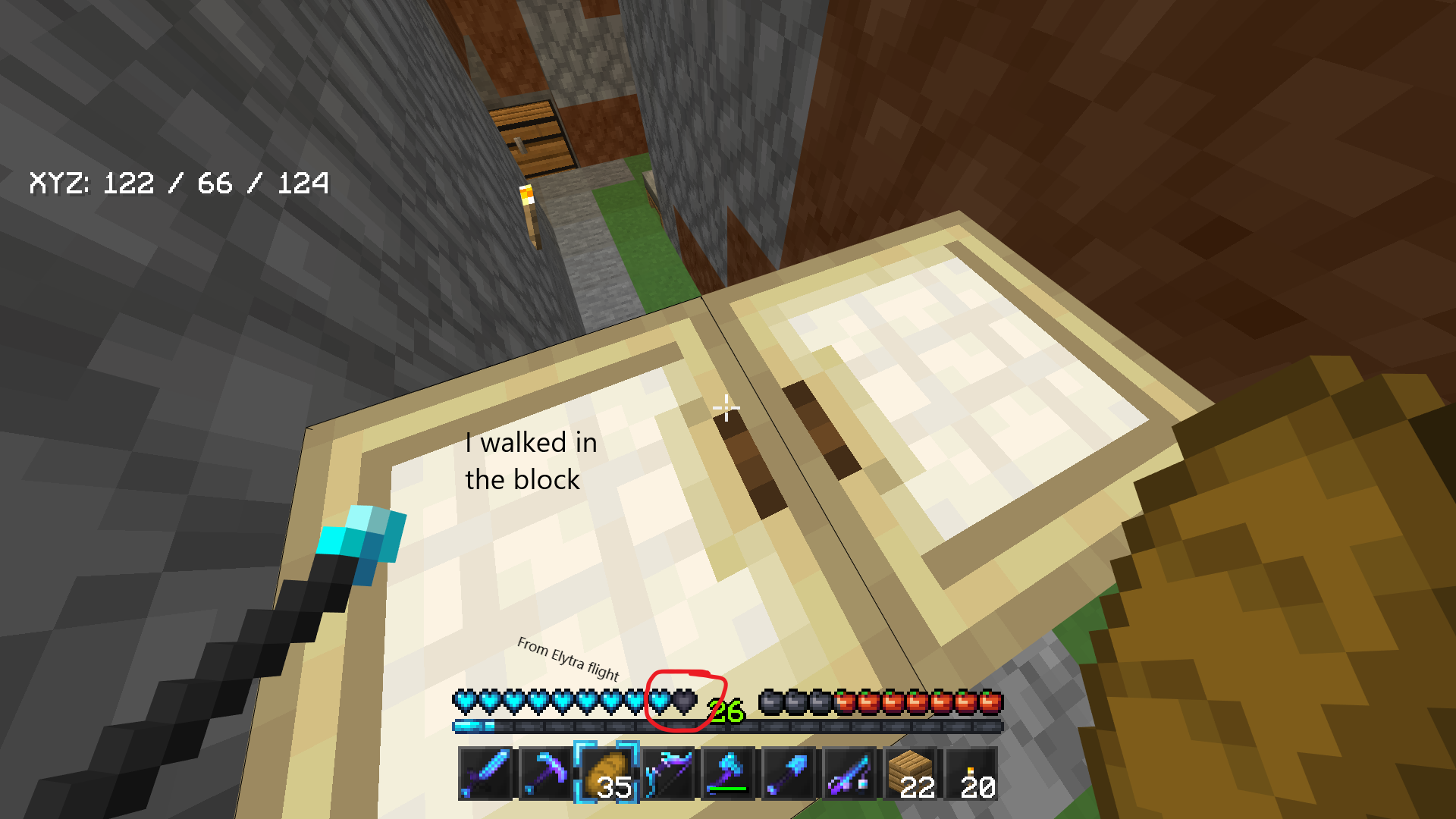 Bugdescription: If you get damage from Elytra flight, you can walk through trap doors and all other Blocks.