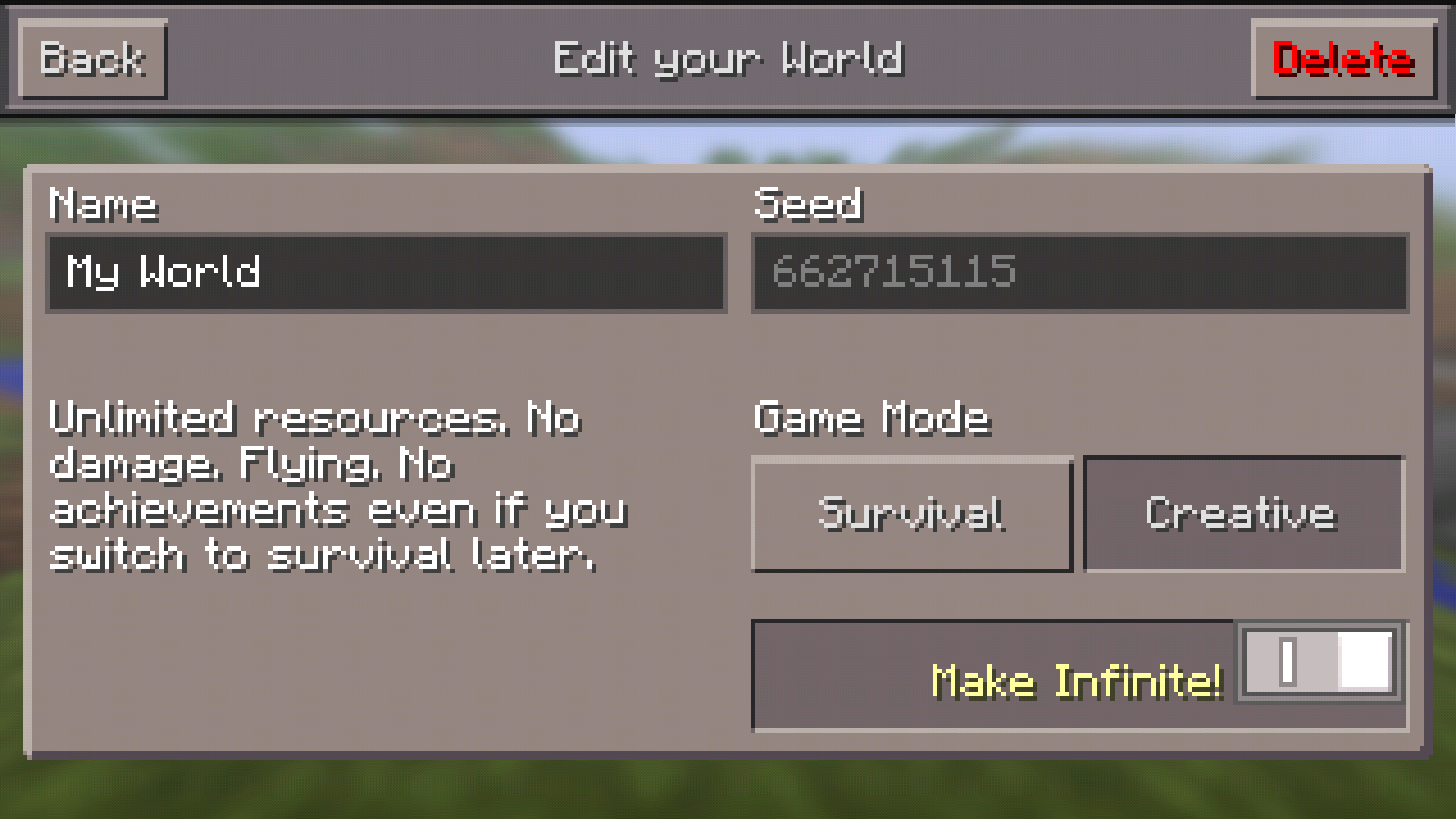 when i change my "old world" to be always day , the "Always Day" switch Interferes with "Make Infinite" button so you can do one thing only (i dont wont my world to be infinite) ... :'(