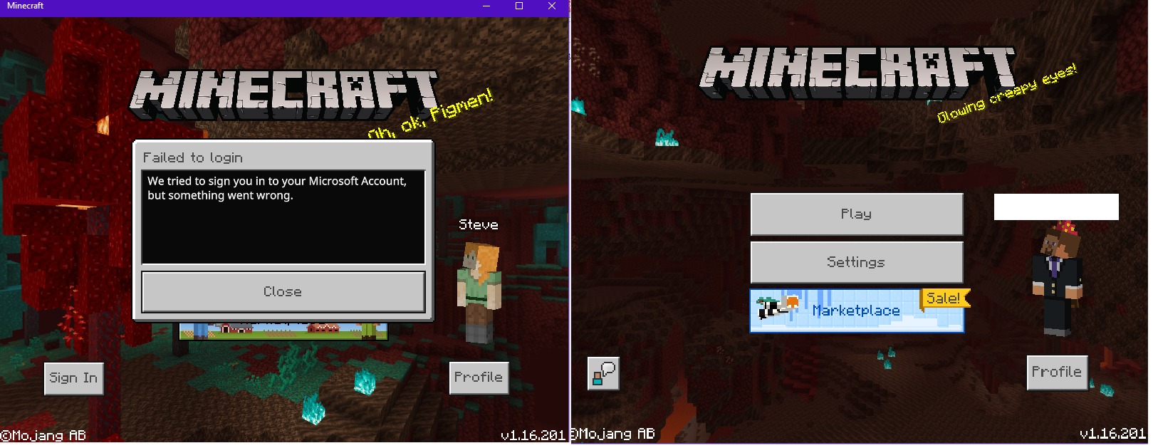 I have a problem with logging in to Minecraft on Windows 10 using Xbox Live, unfortunately I waited for over 5 minutes and still nothing keeps writing to me "signing in with your microsoft account" then the "Connecting" window popped up, but still nothing is happening, disappeared window and after 10 minutes and now there was an error in logging in. Android 10 works normally on the mobile version, but not on Windows 10