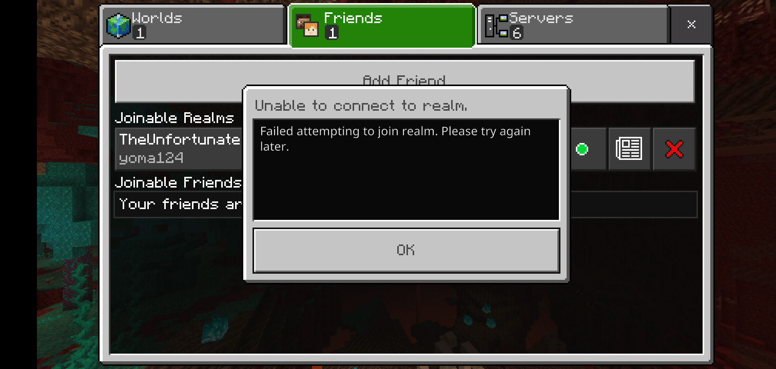 I use to be able to join my friends realm without issue until one day it just stopped letting me join. Everytime I try to log in now it loads for a second then sends me back to the menu. I've already ruled out account issues and interent problems.