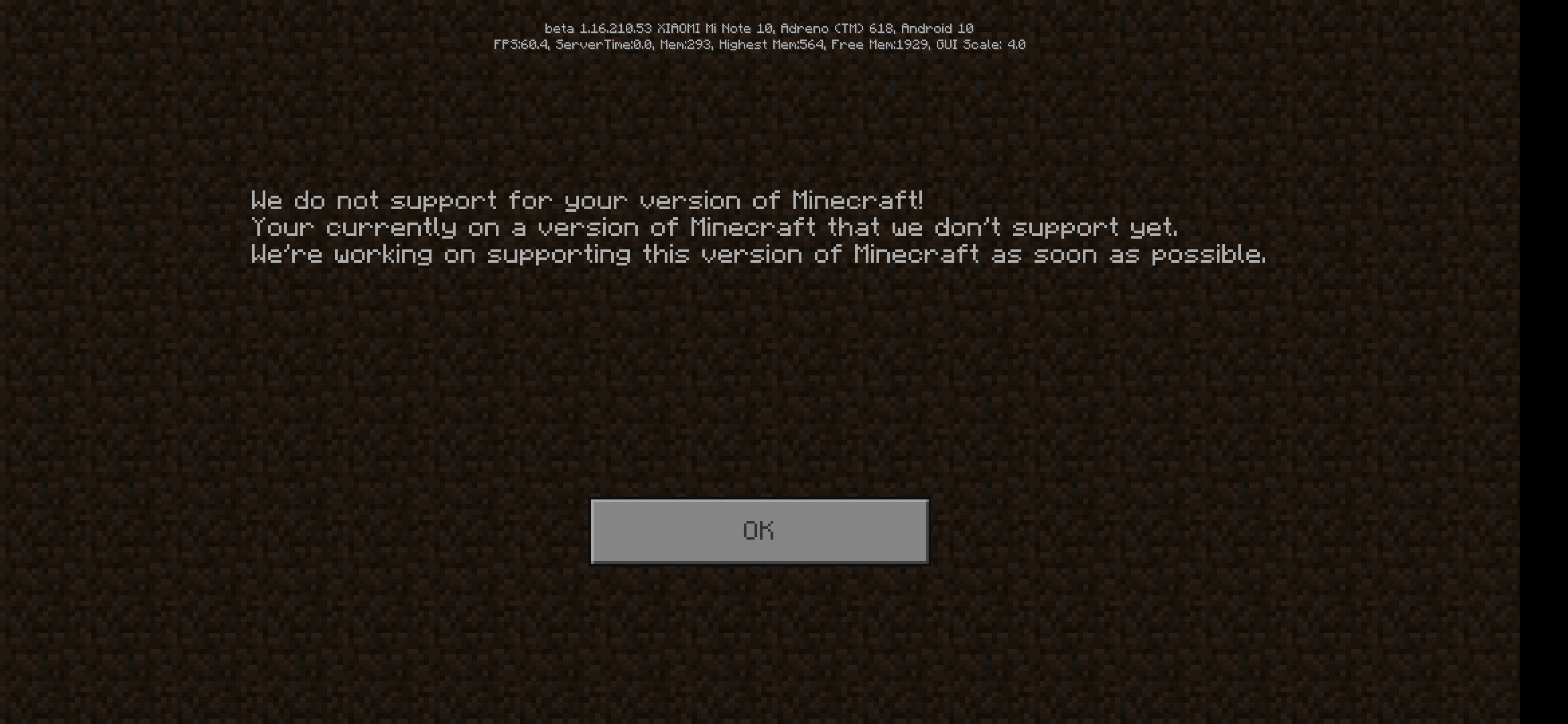 Due to my version being a beta one, I am not able to play on severs, but even though I knew about it I still tried joining one of them. But when that message appeared I was shocked.