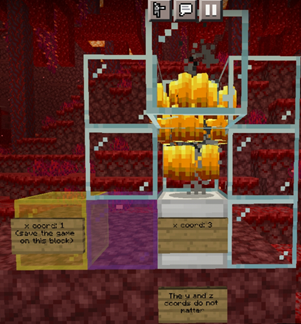 Step 2: Build a structure just like below, with the yellow glass on x coord 1 and the iron block on x coord 3. Blazes are optional.