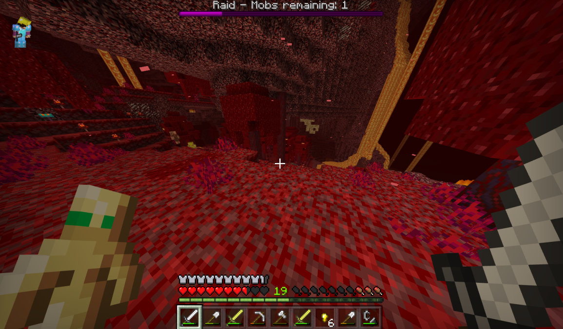 I was exploring a part of the Nether I'd never been in before in an attempt to generate new Nether Update chunks (as I don't often play Bedrock, it hasn't been updated yet) and a Raid bar appeared at the top of my screen. It lasted for maybe a minute before disappearing and displayed there was one remaining raid mob. There is a village in the Overworld that is in a raid which I've never completed, and only one raid mob remains. I think that might be connected.