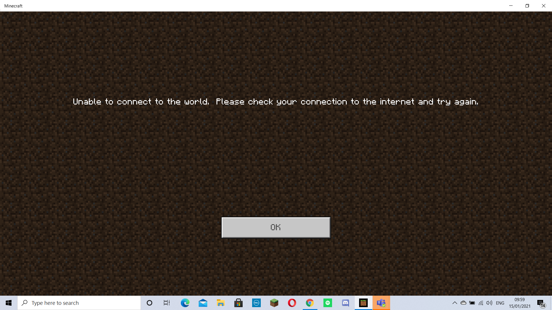 Yesterday, I could go onto my friend's realm on my pc however, the day before and today, any attempt to connect to multiplayer results in an error message during the "Loading resource packs" phase of the loading screen: "Unable to connect to the world. Please check your connection to the internet and try again."