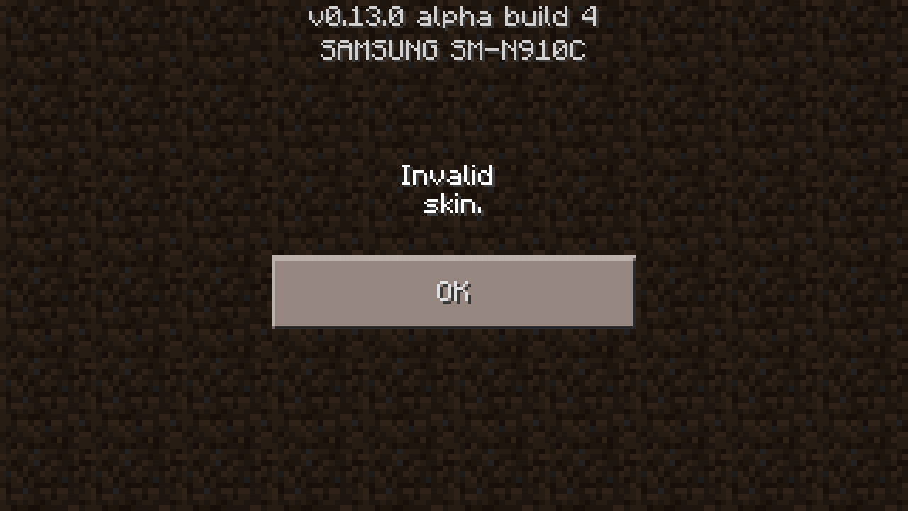 Invalid skin when connecting to a server on MCPE 0.13.0 beta build 4. This doesn't happen on previous builds. Samsung Galaxy Note 2