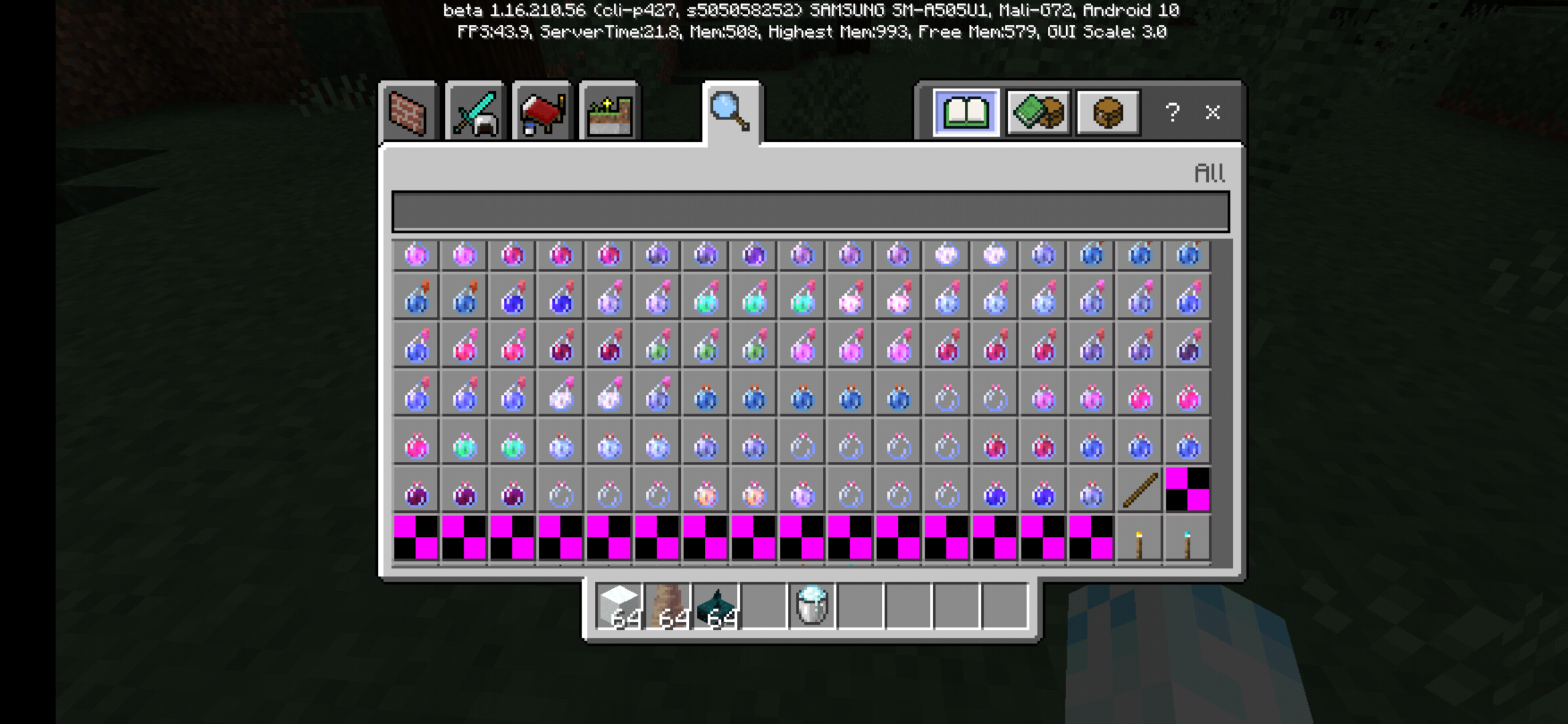 The potions' colors are completely mixed up, as ashown in the screenshot, as well as the missing textures of the beds.