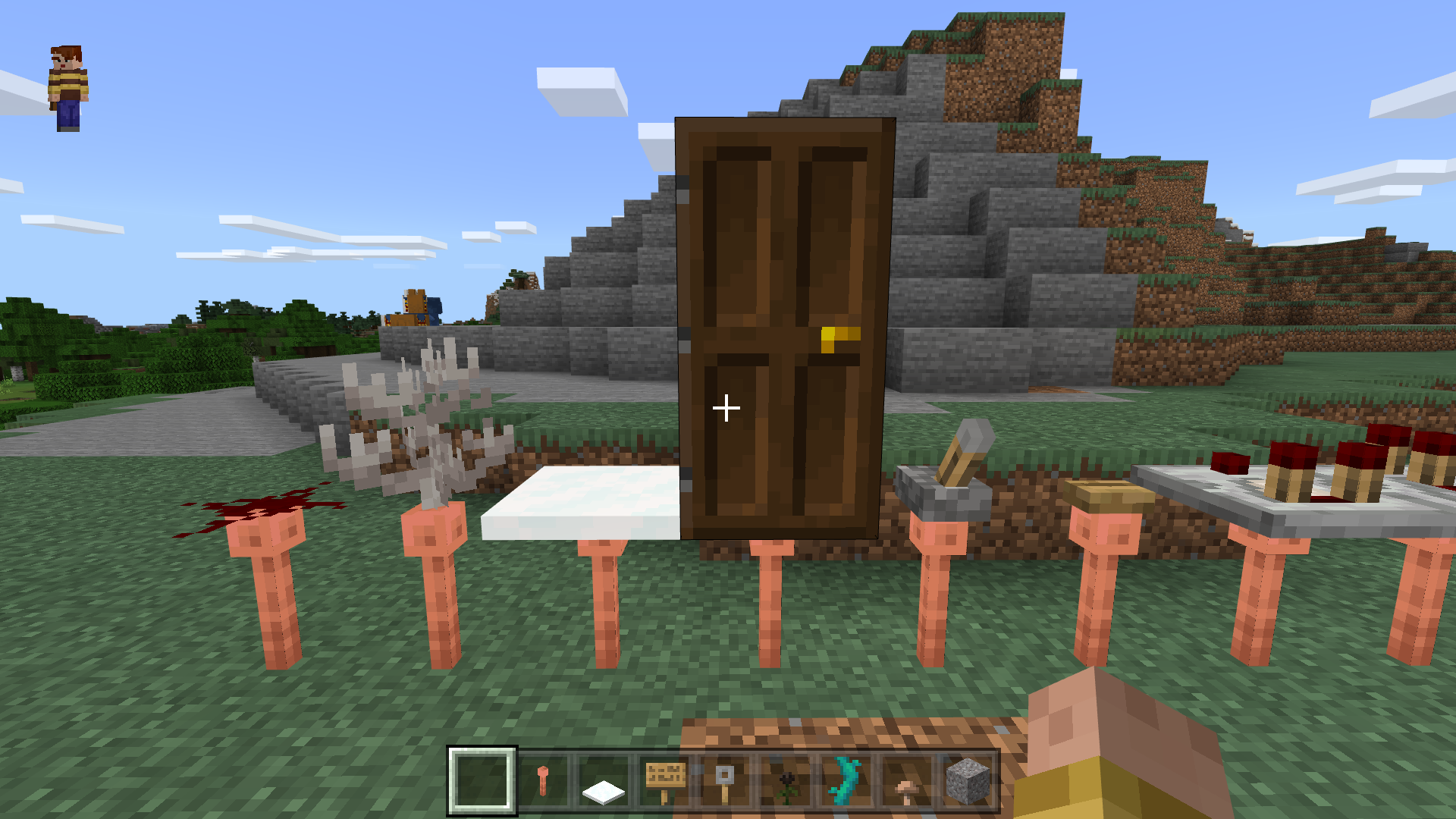 Place down the blocks mentioned here on the lightning rod