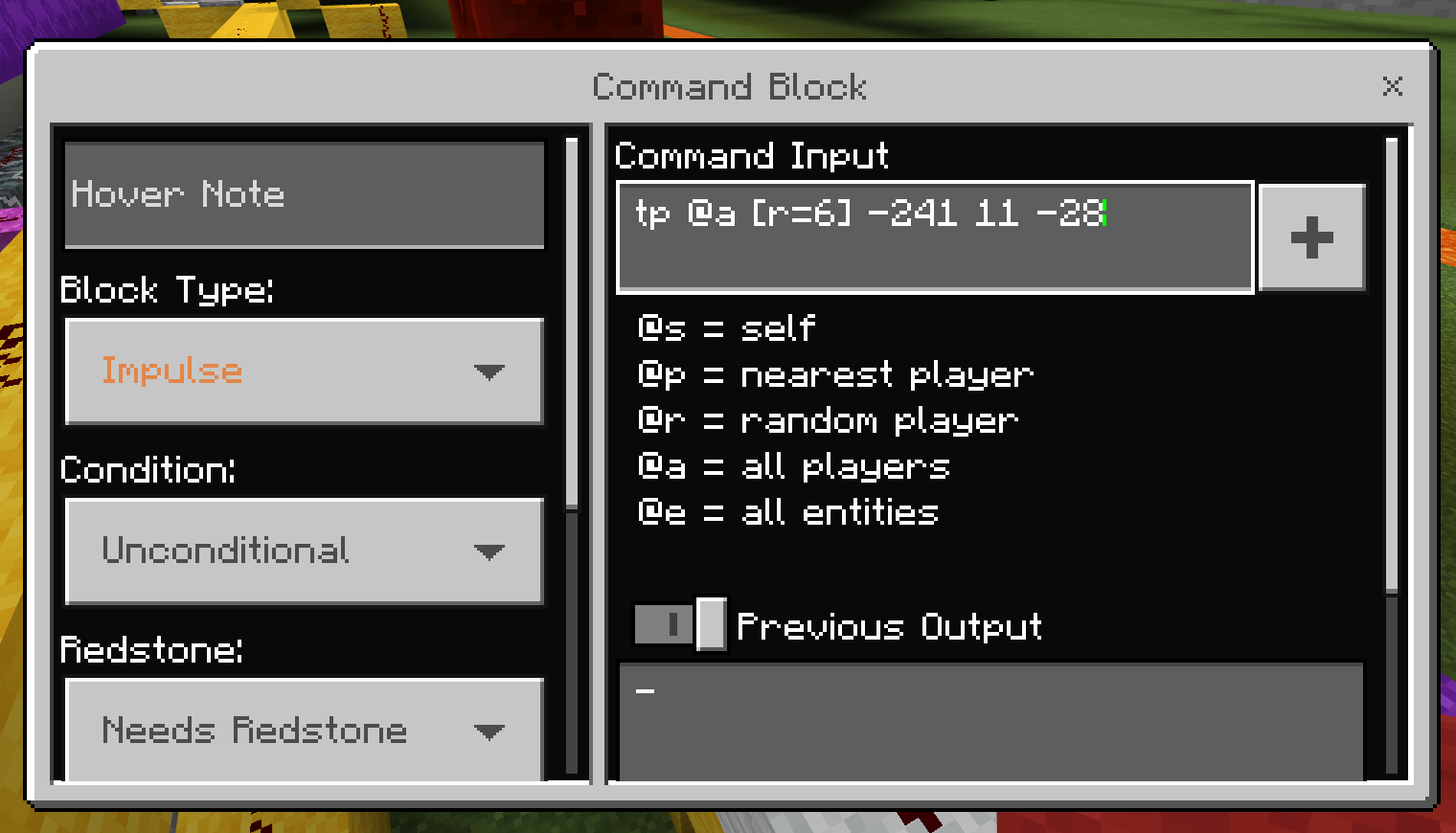 When putting in certain commands like, "tp @a [r=6] -241 11 -28" or even "/fill -152 11 -30 -152 12 -31 barrier" the command block just replaces it with "########" and obviously the command does not work when powered. Typing in the exact same command in the chat, it works just fine.