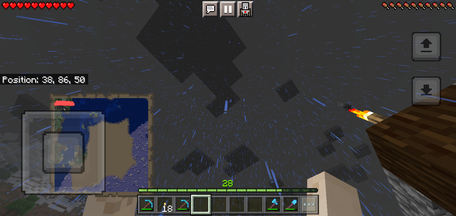 Photos: last one: the original glitch; second to last second one: a reproduction of the bug, but with a thunderstorm (the mobs don't die, which would be bad for survival, unless if you wanted a thunderstorm while you could still see well); third to last one: normal rain; fourth to last one: a normal thunderstorm.