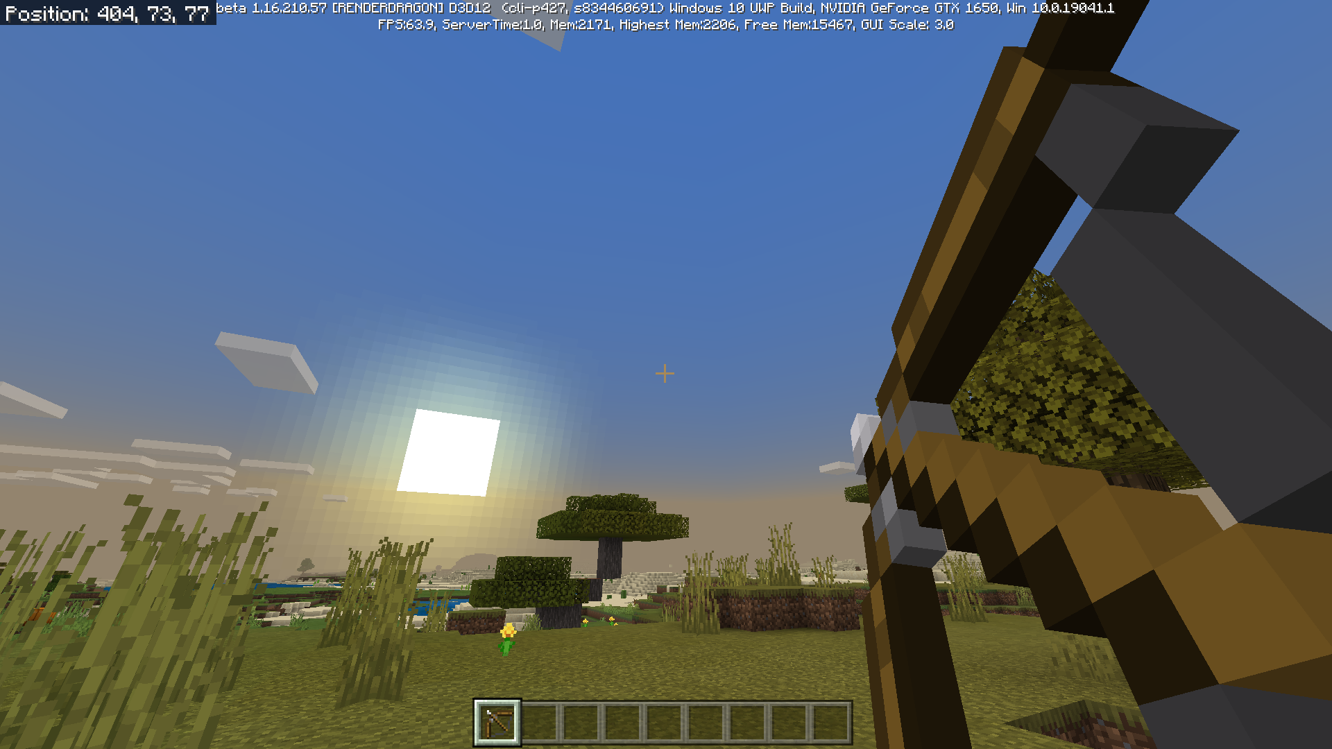 1. Hold a bow and shoot with it, and compare between previous version and the latest beta