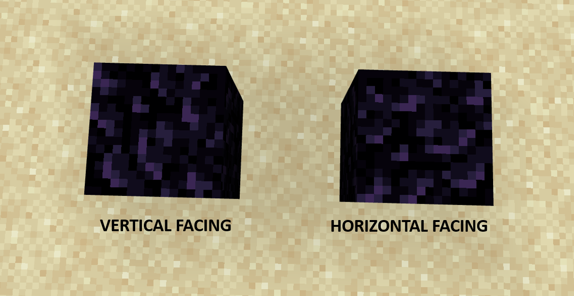 Not sure if this is a bug, but sometimes obsidian and crying obsidian blocks do not face always the same direction. Sometimes it looks like if the block where in a horizontal orientation and sometimes it looks like if they were facing in a vertical direction.