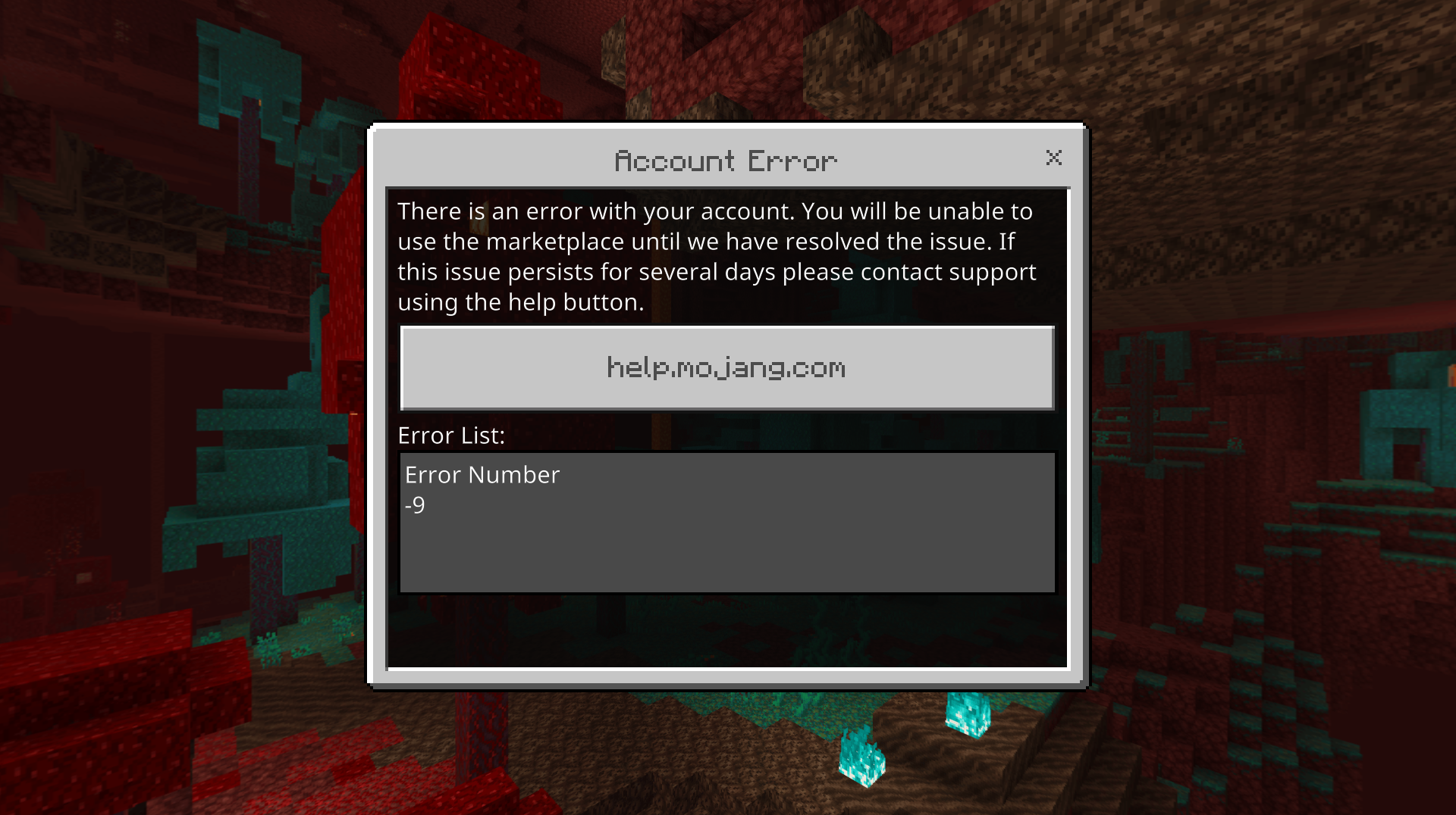 When I go to login, my Microsoft account info is all there and correct. But when I press the actual sign in button, I am taken to the Error 9 screen. I cannot access the marketplace or my realm. This has been ongoing for at least a week, and my realm hasn't been accessible to other players for at least as long.