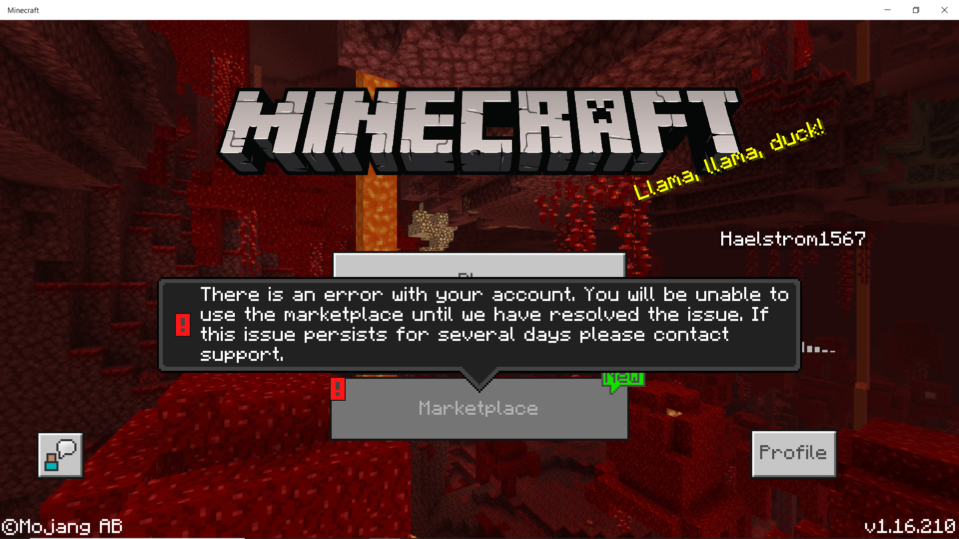 Windows 10, Minecraft 1.16.210 - same error for almost a week "There is an error with your account. You will be unable to use the marketplace until we have resolved the issue. If this issue persists for several days please contact support". Nothing worked for me, uninstalling, resetting etc.