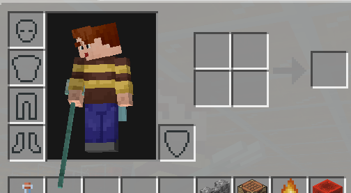 When opening the inventory in flight, the player in the inventory holds some very strange items. Trident, crossbow, shield, spyglass.