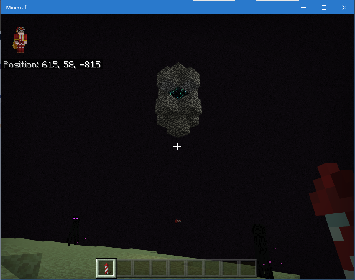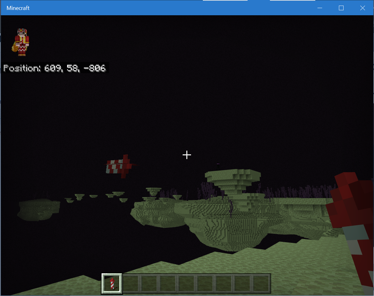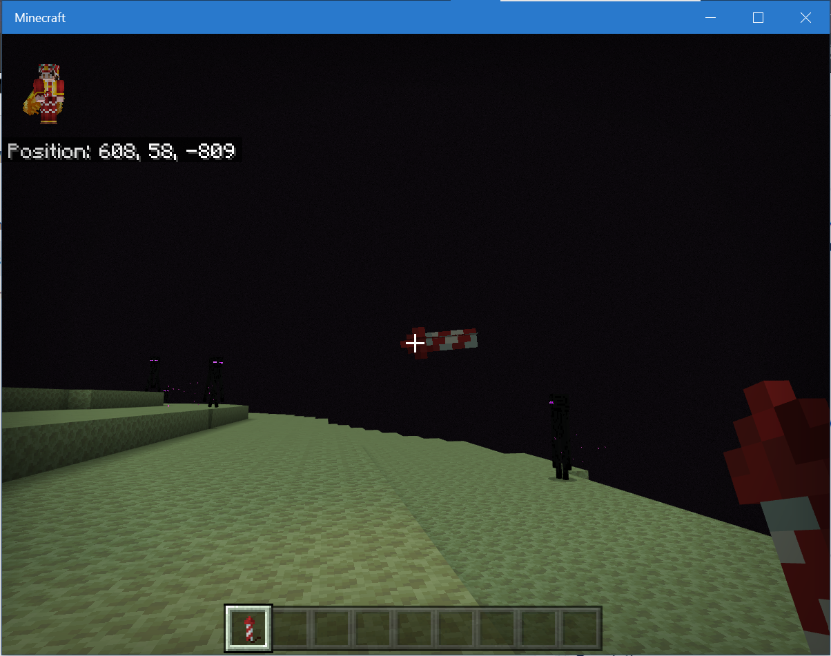 After crossing the end gateway with Elytra and a firework rocket, the firework rocket remains above the ground at the outer islands and can not be removed.