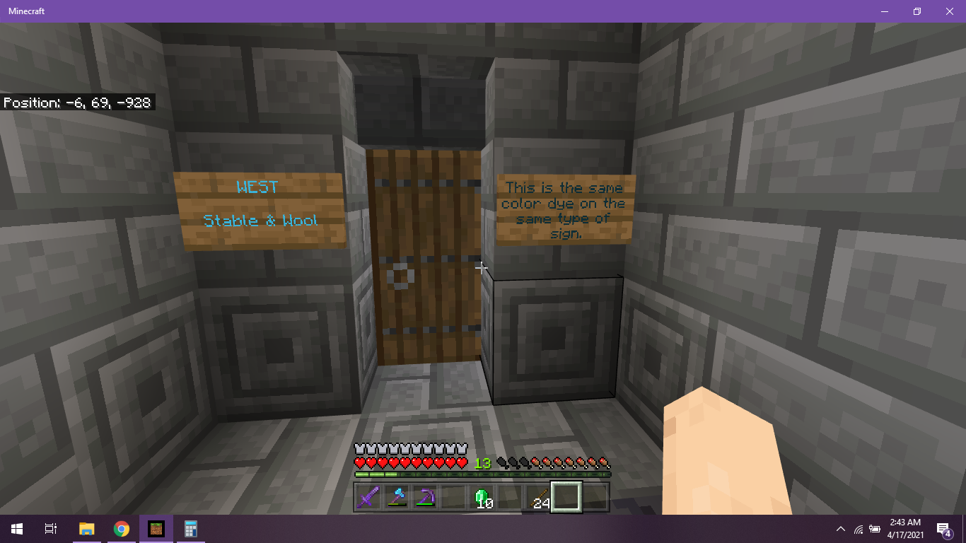 Compared to java, the colored text of a sign is too dark (using dyes or §, but only for signs placed in 1.16.220 or later). It almost appears black when you have low brightness.