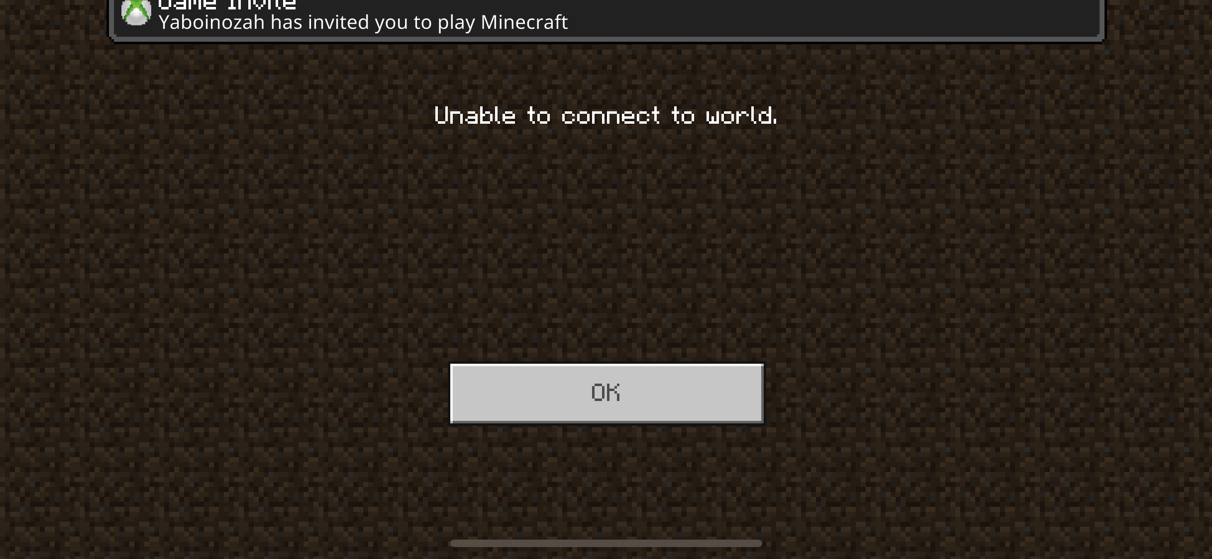 When I try joining my friend it says unable to connect to world. To give sort of a brief summary, basically me, and 3 other friends play on one of our friends world (I'll just call him Joe for simplicity). We used to be able to join Joe's world perfectly fine but randomly one day it just didn't let us join. All it said was "unable to connect to world". Today, one of my friends could join Joe's world but me and the other friend couldn't. We have literally tried every possibility we can think of, I turned my phone off and back on, restarted minecraft like 50 times, unfriended and re-friended Joe and even logged out of my XBOX live account and logged back in. I can already answer some questions I am guessing you will have, 1) No it isn't our WiFi because we can join the other friend who joined Joe. 2) Yes we are all on the same game version, we all checked. 3) It isn't Joe's WiFi as the other friend can join it. 4) We are only having this problem joining Joe's world, Joe and the other friend have issues joining my world too. 5) Yes I did check my privacy settings but I cannot find anything related to joining games. 6) Yes we did try inviting but that just gives the same result as joining normally. 7) I can join other servers like the Hive and stuff since my friends and I play on them regurarly. I did update my iOS thing , I'm not sure if they did but I don't believe it should play a big role in this situation.