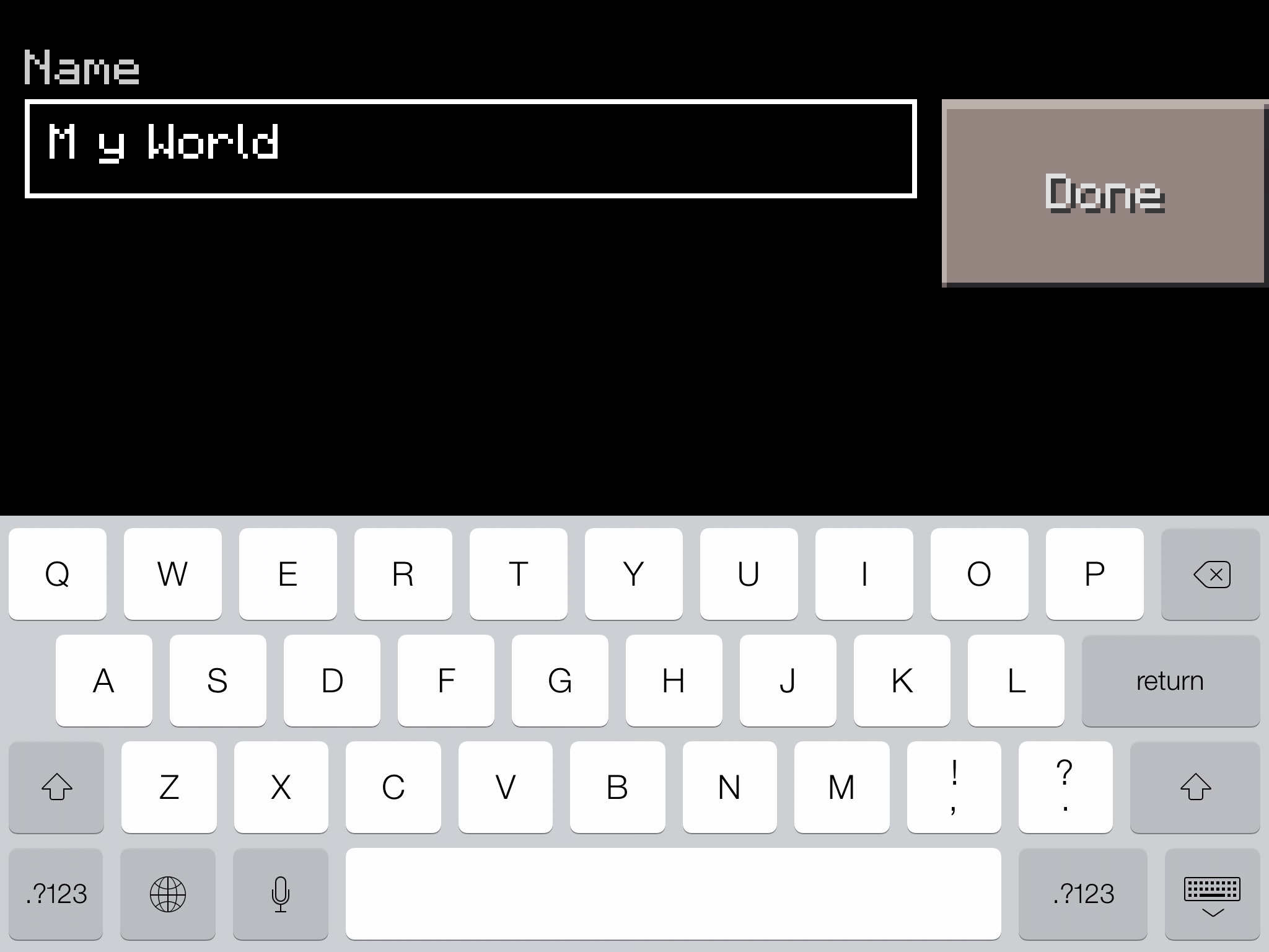 3. Select the "New" icon in the top right corner of the screen. Attempt to edit the name of the world.