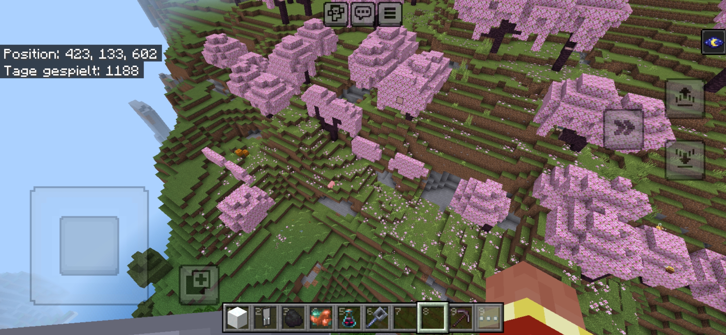 There should now be 2 birch trees to your right that have been cut off at the chunk boundry (shown in blue).