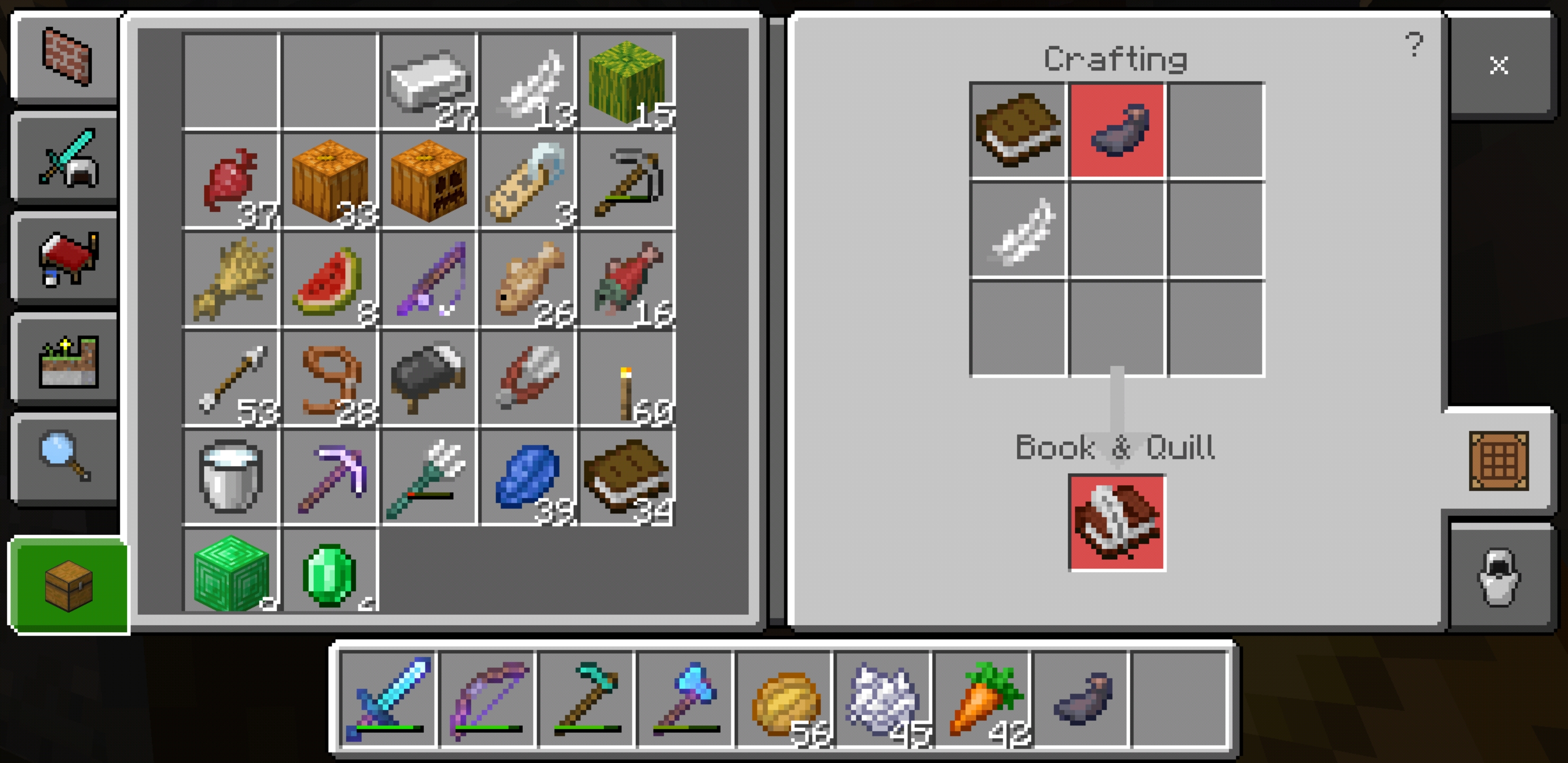 I cannot make a book and quill or black dye. Apparently the ink sac doesn't register as an item when placing it on a crafting table. This is new. I have browsed current issues and cannot find it. Please see the current screenshots I have attached. If you need anything further please ask.