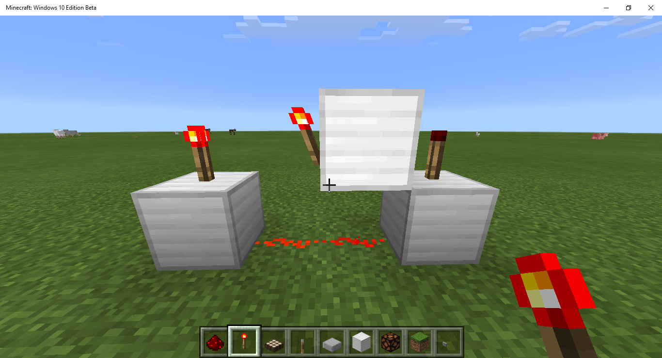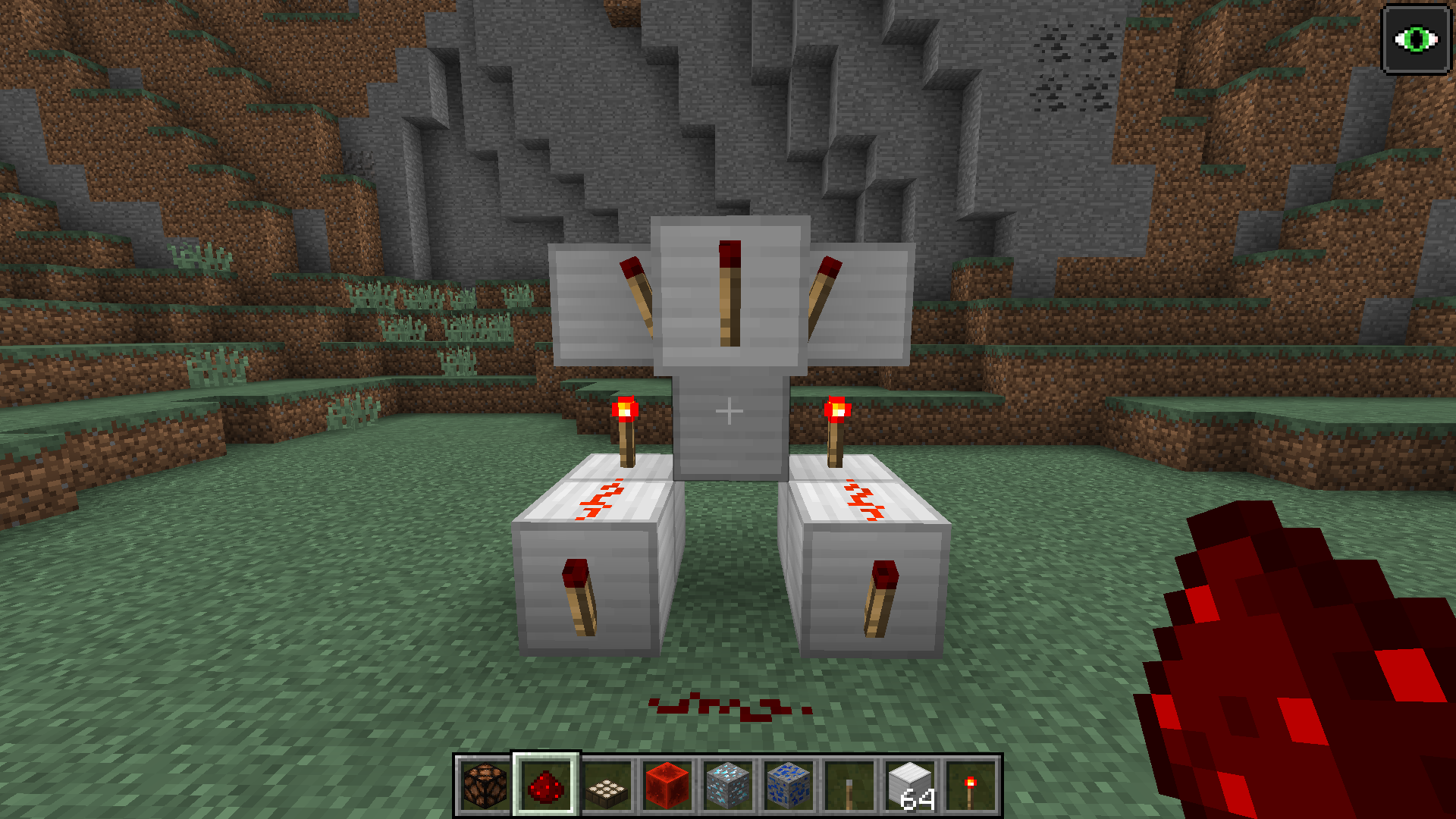 In the attachment PEb, the same circuit is being powered by a redstone torch from above. Once again, the torch on the left where the redstone is being powered doesn't turn off, where the torch on the right does. Attachment PCb shows the same circuit in PC for reference.