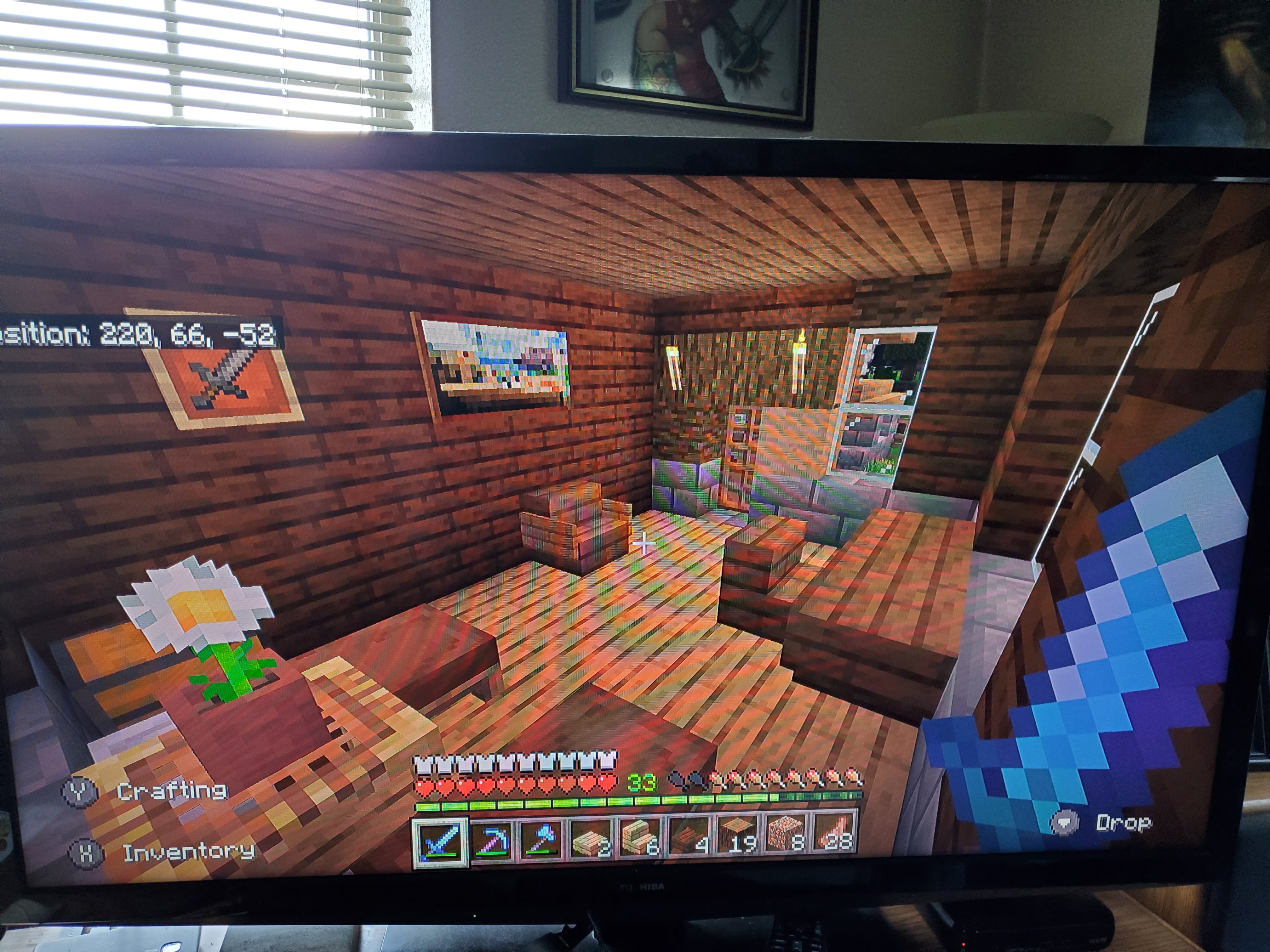 It is easier to see light level changes for calculation if you turn off smooth lighting in settings. It may also be easier to see where the lower light is if you turn down the brightness or backlight on the TV.
