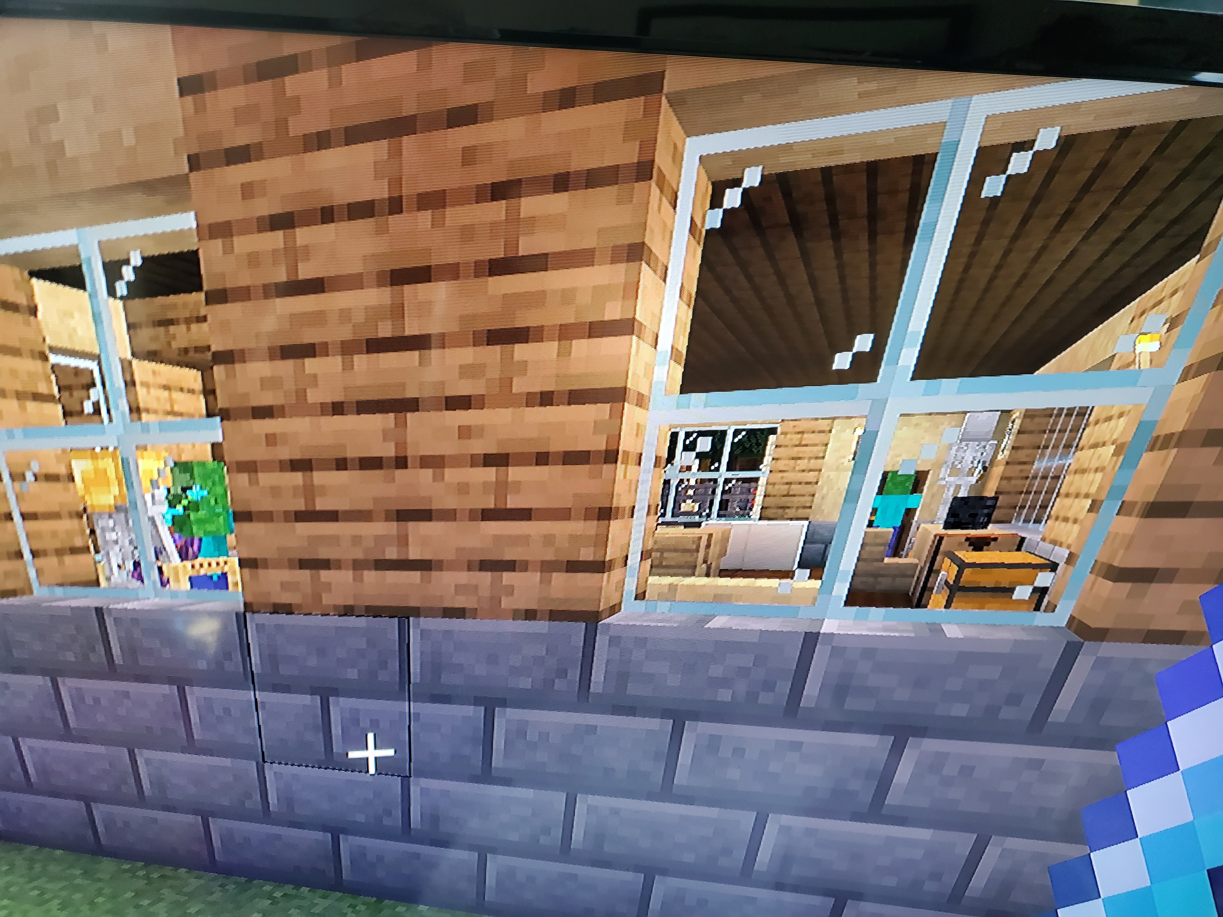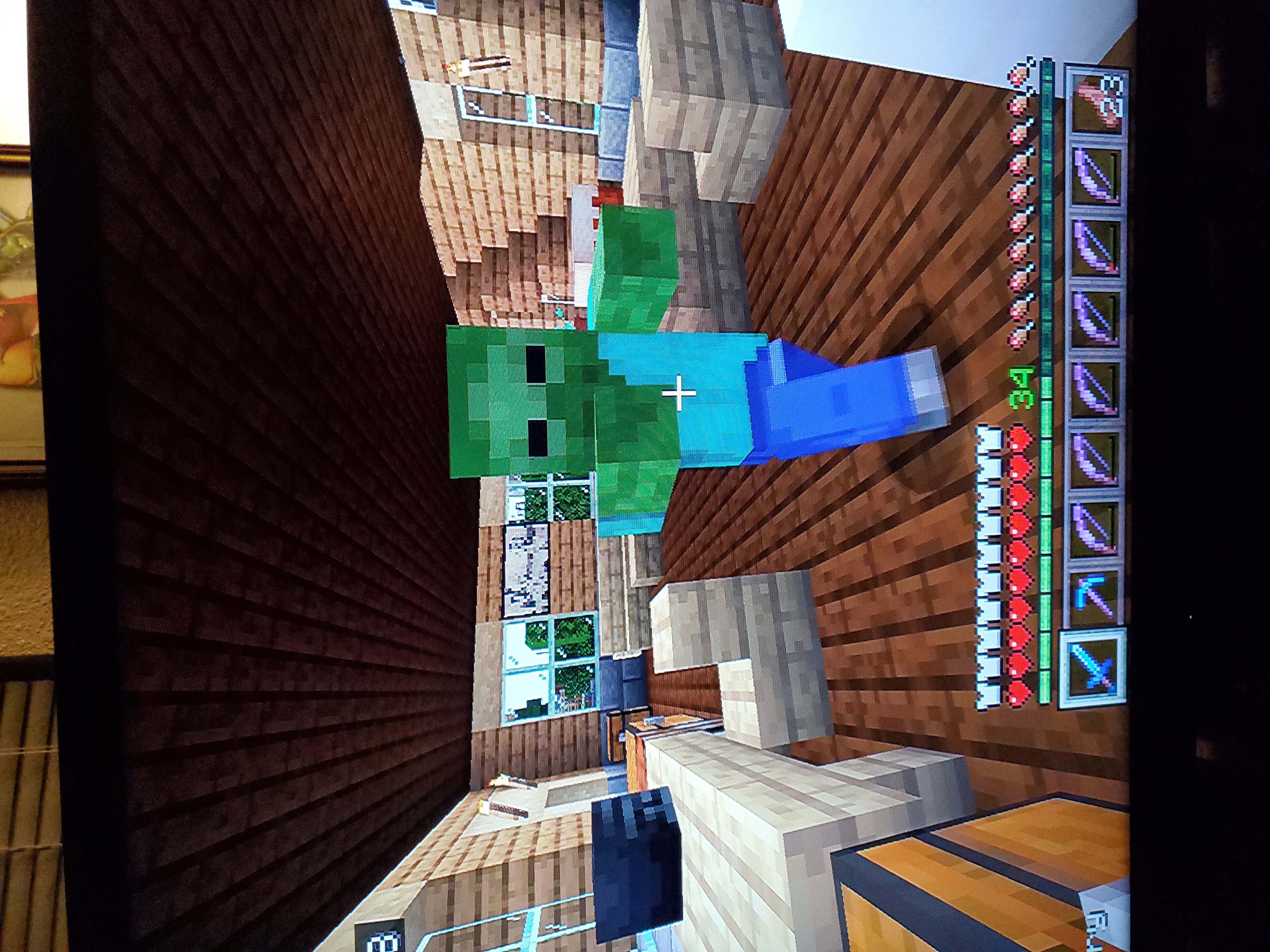 The first two pictures are of my home. Skeleton was found wandering on the other side of the fish tank. The third picture is of my daughters house. I've found zombie hordes in there 3 times now. The last 2 pics are my home for rehabilitated zombies. Zombies I've cured back into villagers and assigned jobs to. I've been building and playing in this world seed for years. I've Never had this happen. I'll try to get pics of it happening too.