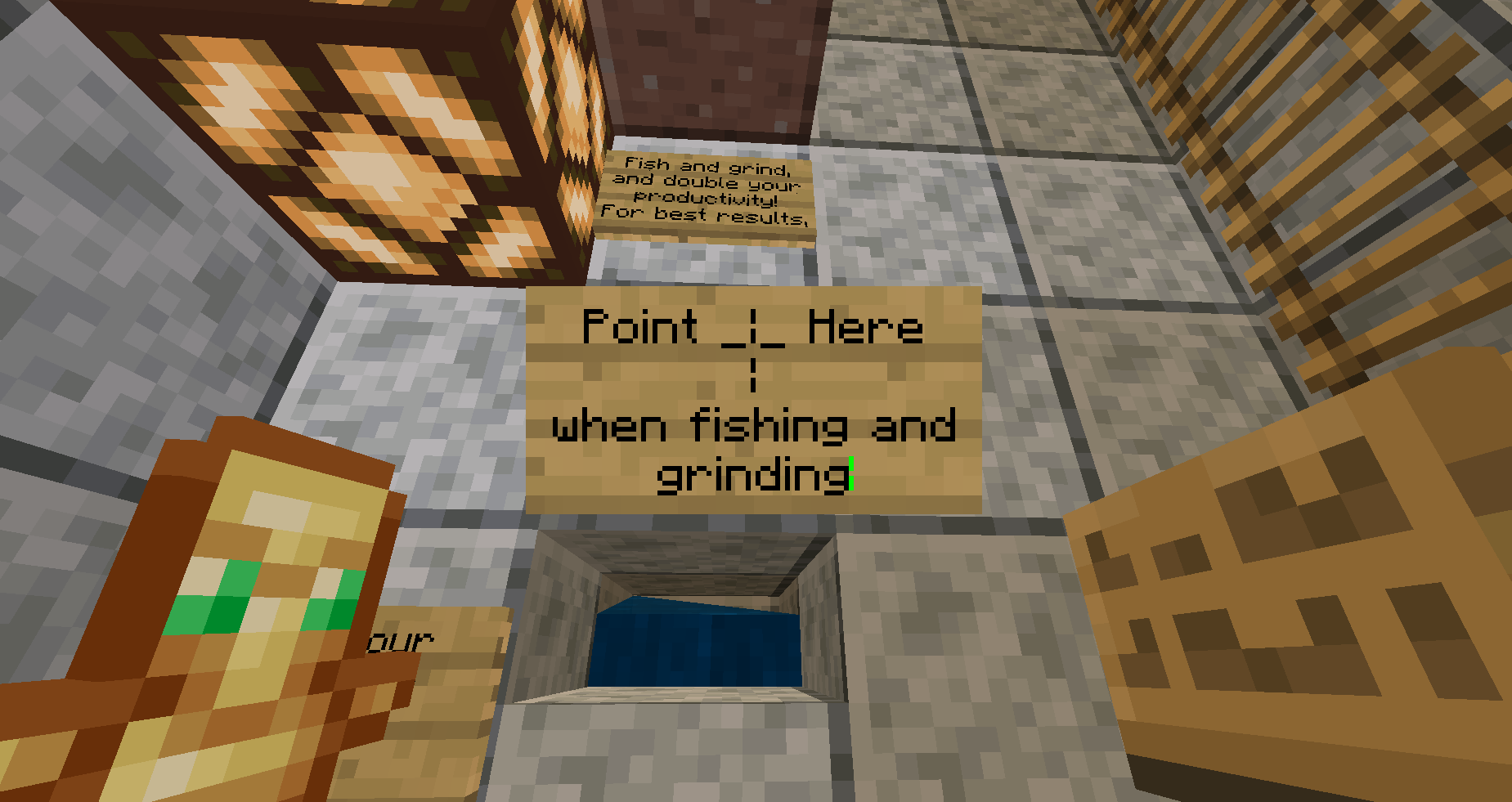 You can see the text I entered on the sign in the screenshots. Every line is followed by an Enter keystroke.