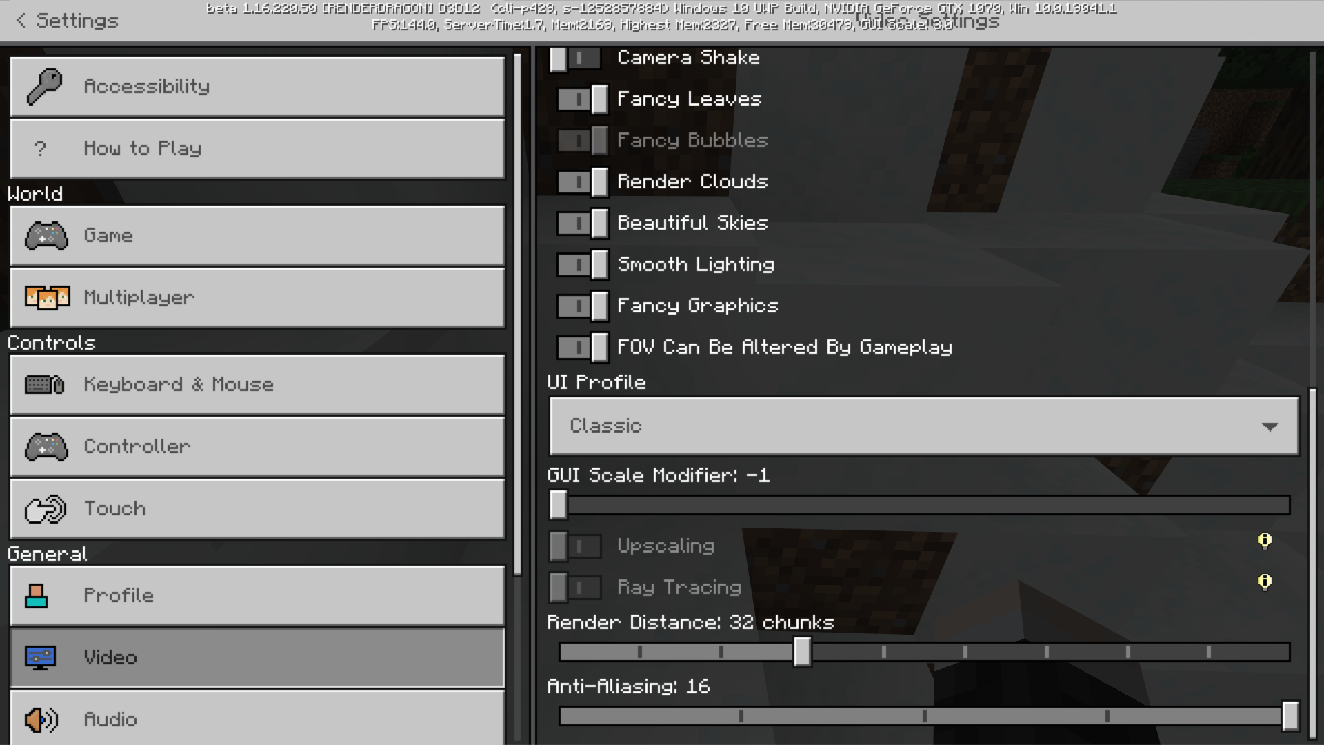 Starting with the introduction of RenderDragon, UI elements are affected by anti-aliasing. This causes unwanted side effects, such as blurry menus and problems with transparency, such as the crosshair losing transparency, staying completely white, and the hotbar rendering differently.